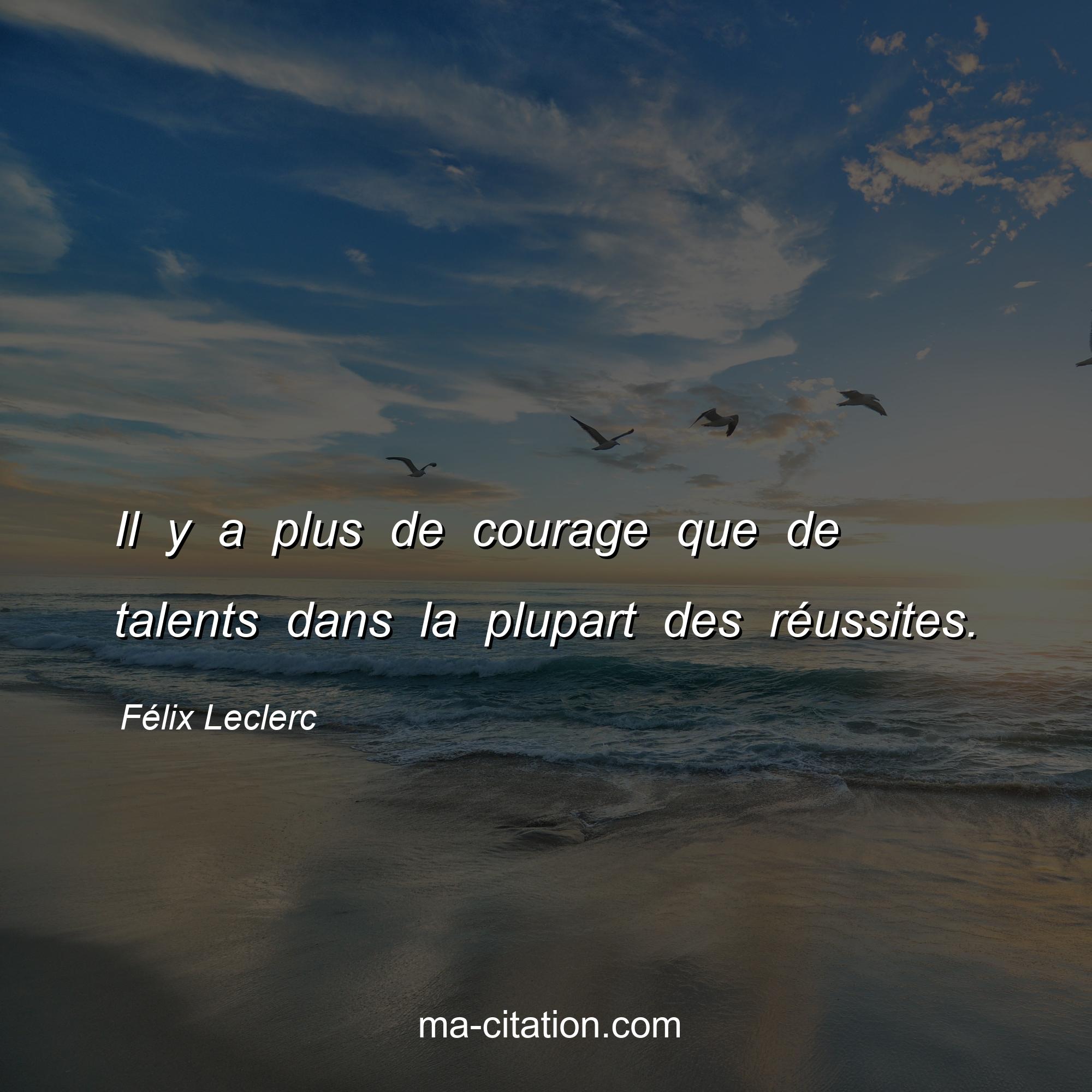 Félix Leclerc est l'auteur de la citation sur la motivation "Il y a plus de courage que de talents dans la plupart des réussites.".