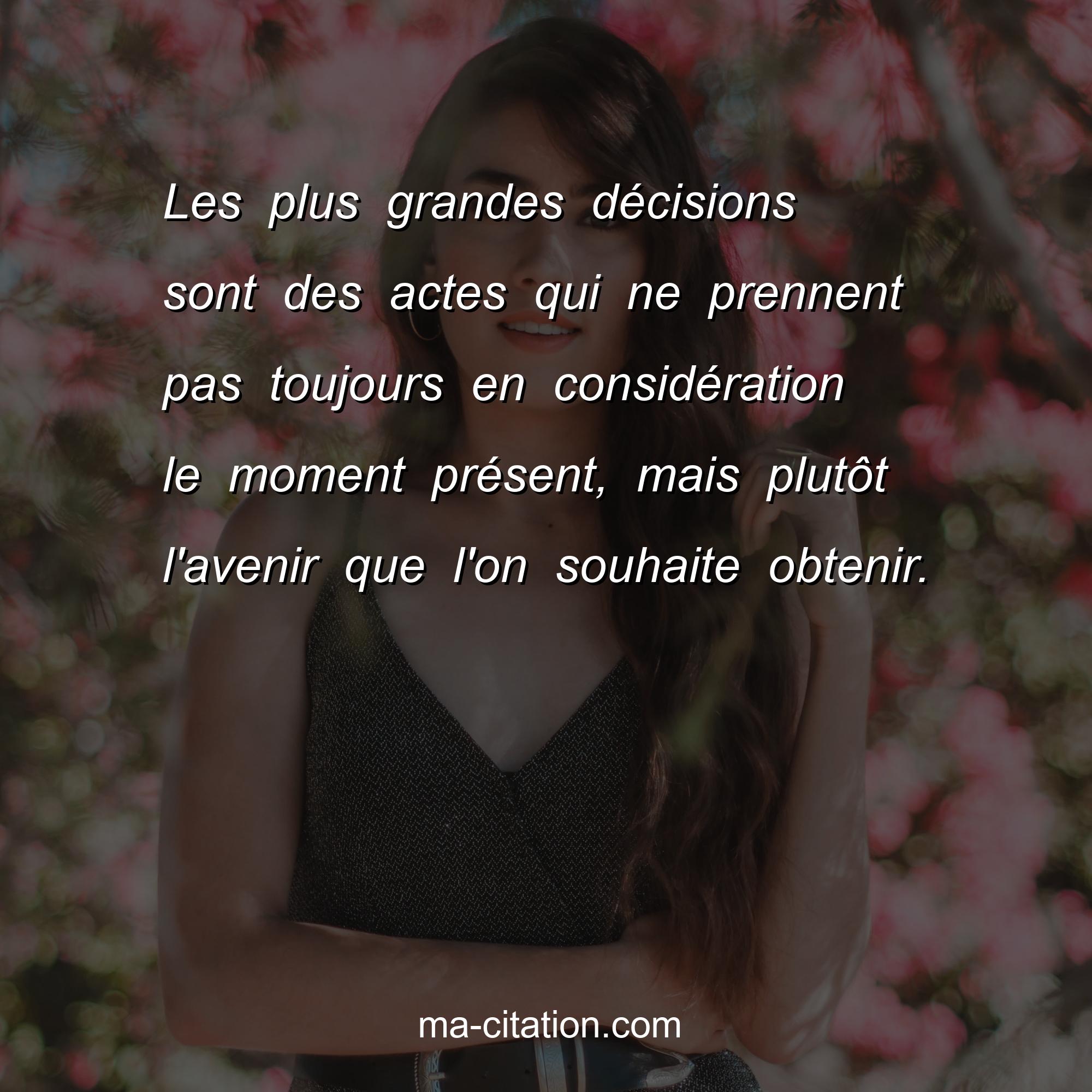 Citation sur la motivation :Les plus grandes décisions sont des actes qui ne prennent pas toujours en considération le moment présent, mais plutôt l'avenir que l'on souhaite obtenir.