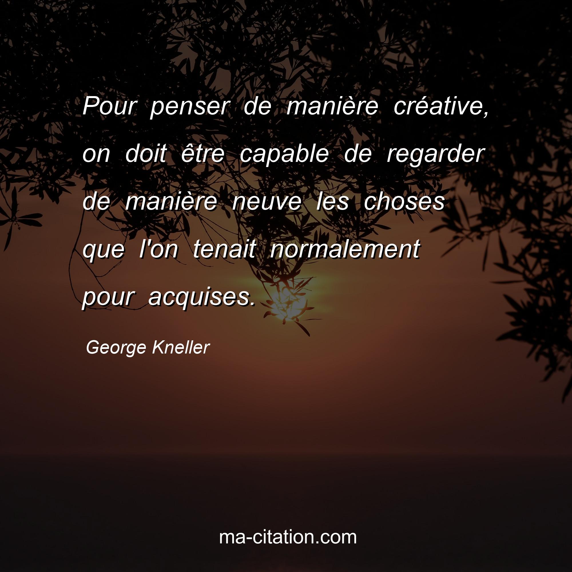 George Kneller est l'auteur de la citation sur la motivation "Pour penser de manière créative, on doit être capable de regarder de manière neuve les choses que l'on tenait normalement pour acquises.".