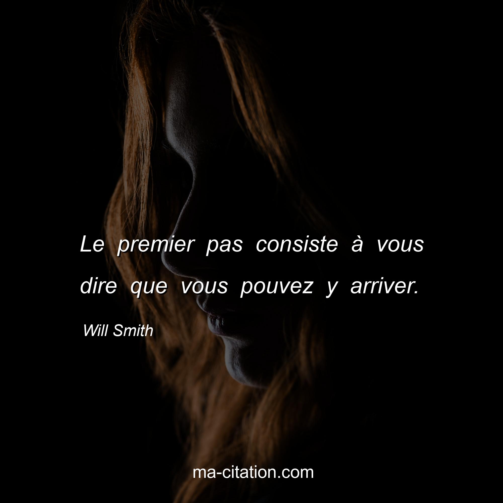 Citation sur la motivation de Will Smith :Le premier pas consiste à vous dire que vous pouvez y arriver.
