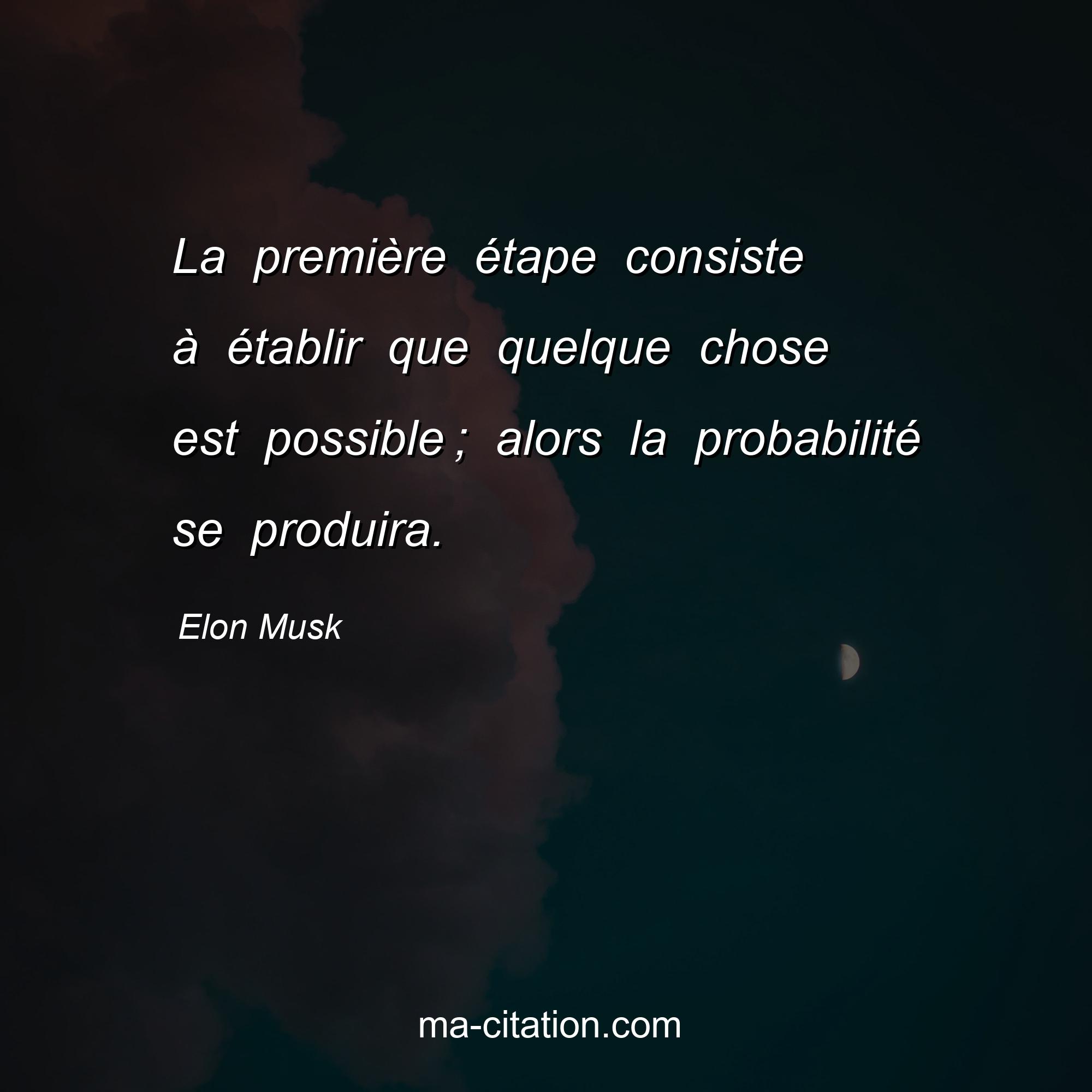Elon Musk est l'auteur de la citation sur la motivation "La première étape consiste à établir que quelque chose est possible ; alors la probabilité se produira.".