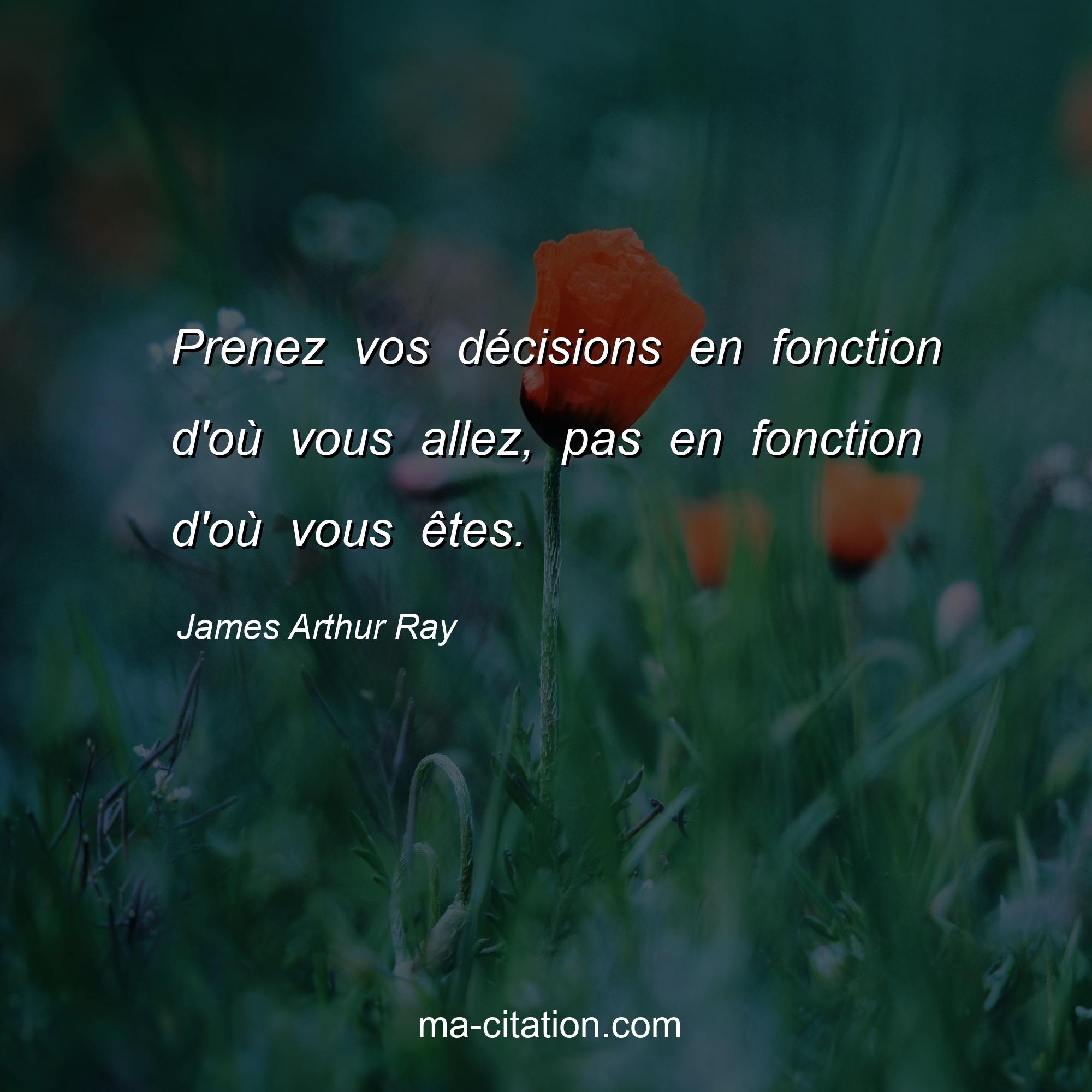Citation sur la motivation de James Arthur Ray :Prenez vos décisions en fonction d'où vous allez, pas en fonction d'où vous êtes.