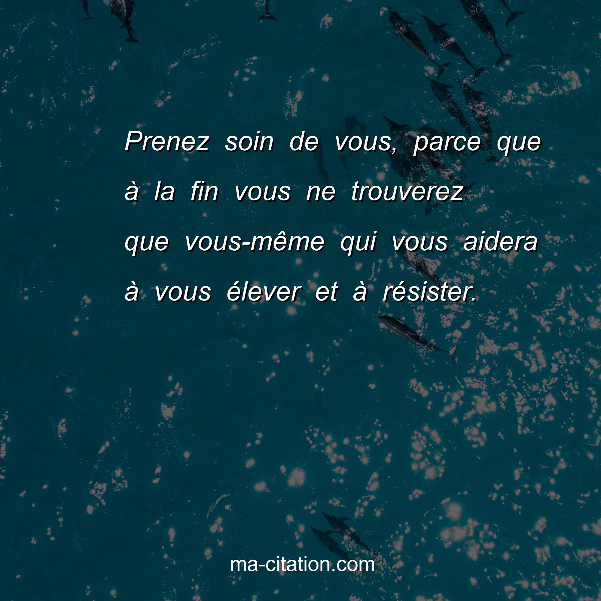 Citation sur la motivation :Prenez soin de vous, parce que à la fin vous ne trouverez que vous-même qui vous aidera à vous élever et à résister.