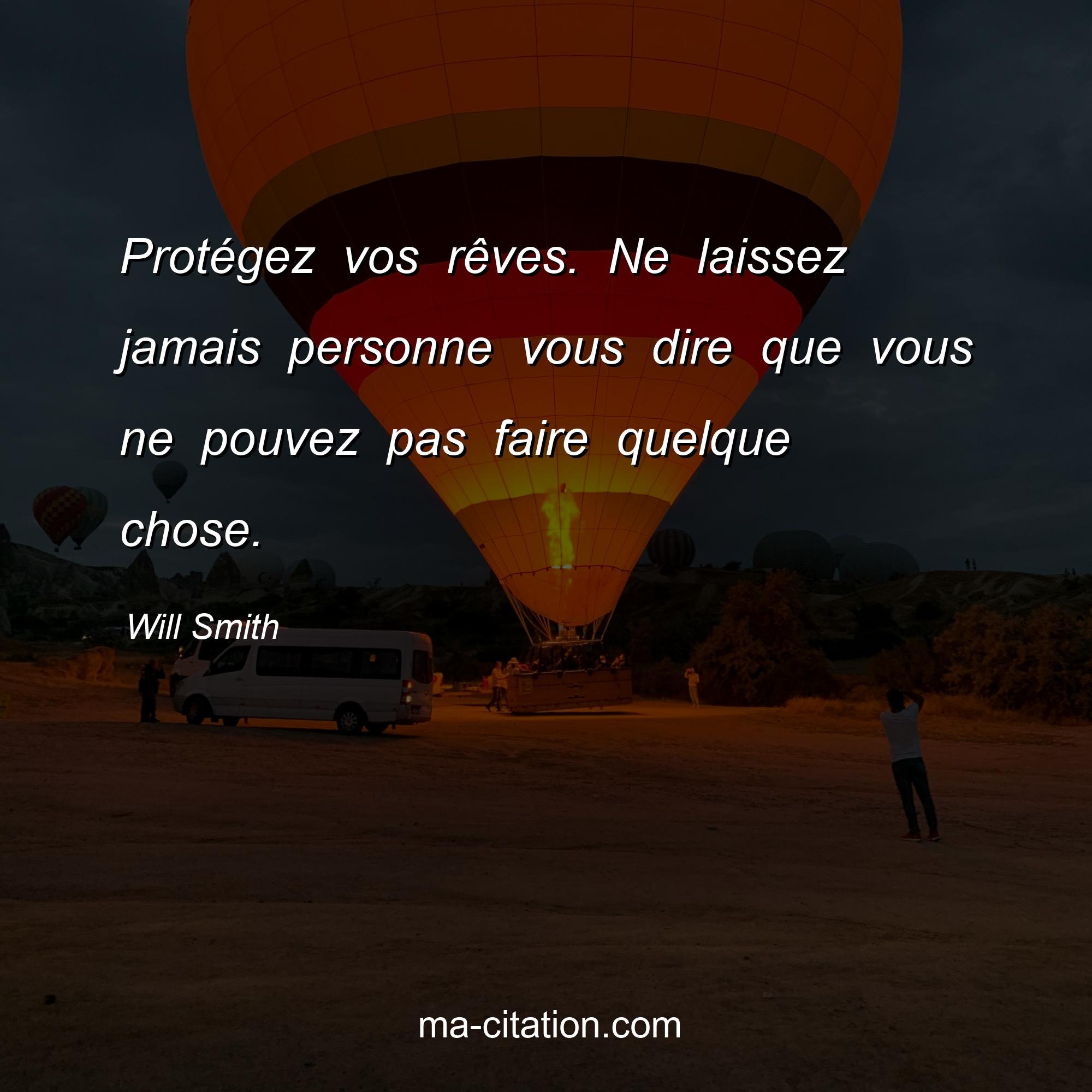 Will Smith est l'auteur de la citation sur la motivation "Protégez vos rêves. Ne laissez jamais personne vous dire que vous ne pouvez pas faire quelque chose.".