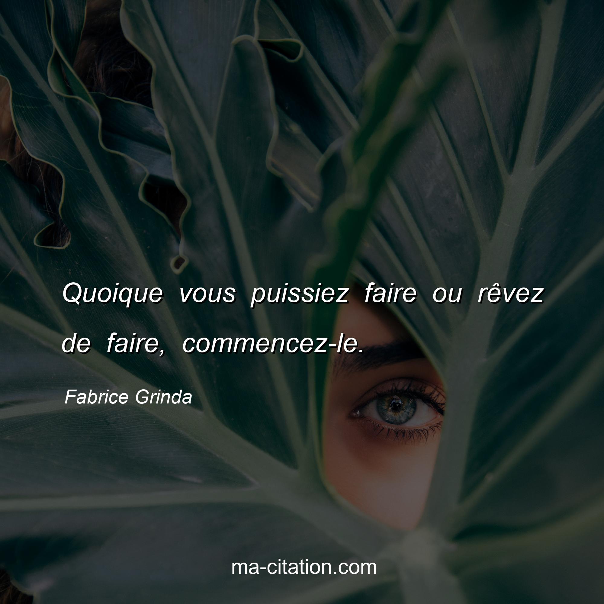 Citation sur la motivation de Fabrice Grinda :Quoique vous puissiez faire ou rêvez de faire, commencez-le.