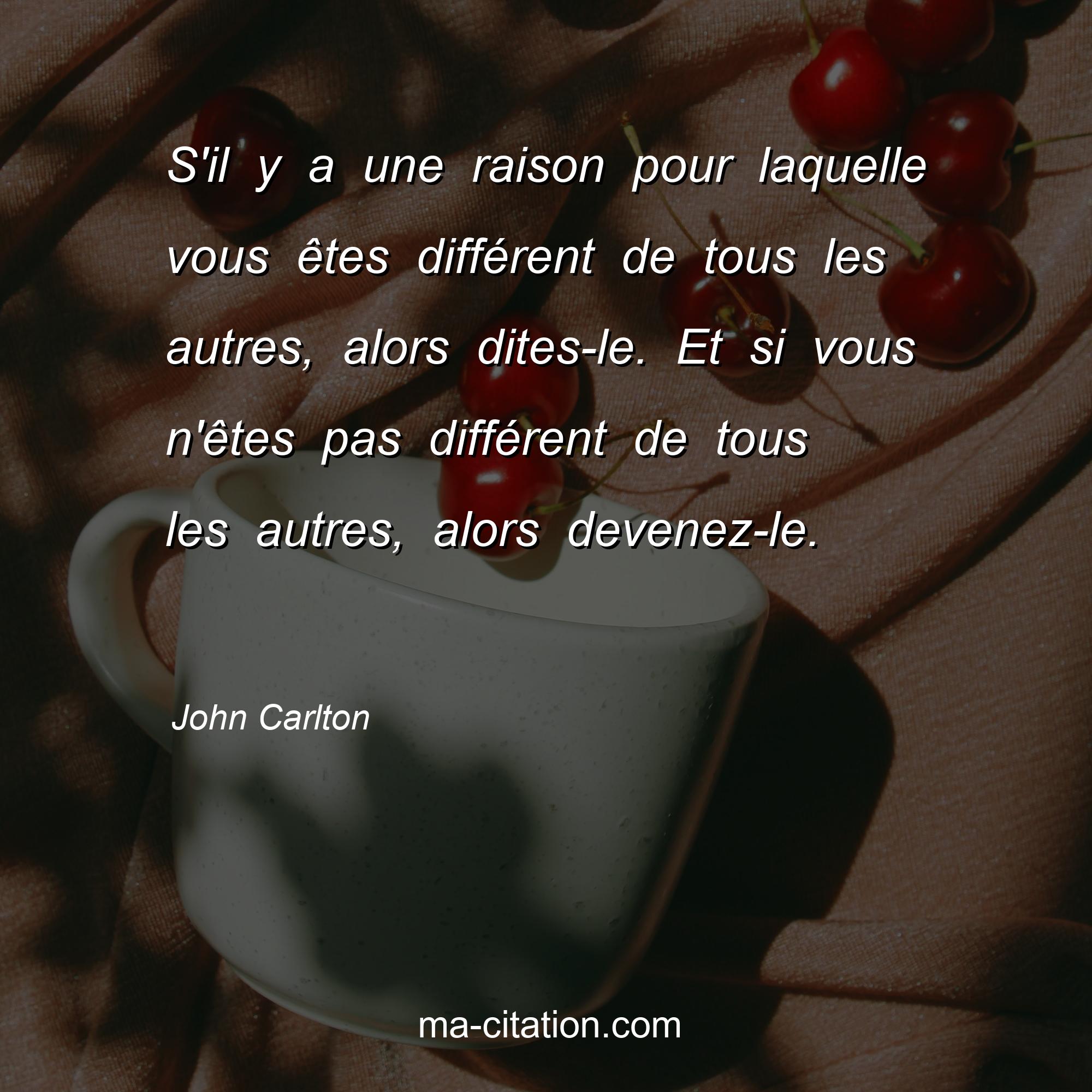 John Carlton est l'auteur de la citation sur la motivation "S'il y a une raison pour laquelle vous êtes différent de tous les autres, alors dites-le. Et si vous n'êtes pas différent de tous les autres, alors devenez-le.