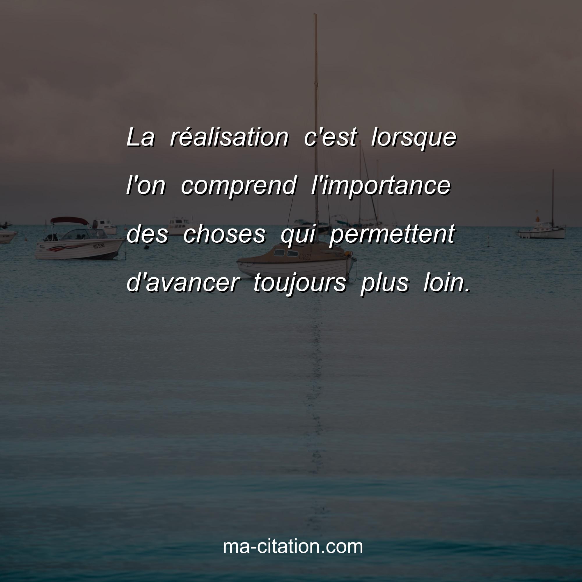 La réalisation c'est lorsque l'on comprend l'importance des choses qui permettent d'avancer toujours plus loin.