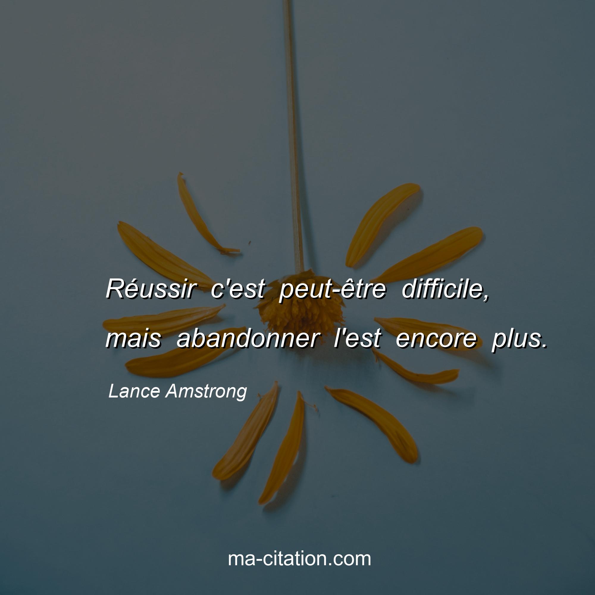 Citation sur la motivation de Lance Amstrong :Réussir c'est peut-être difficile, mais abandonner l'est encore plus.