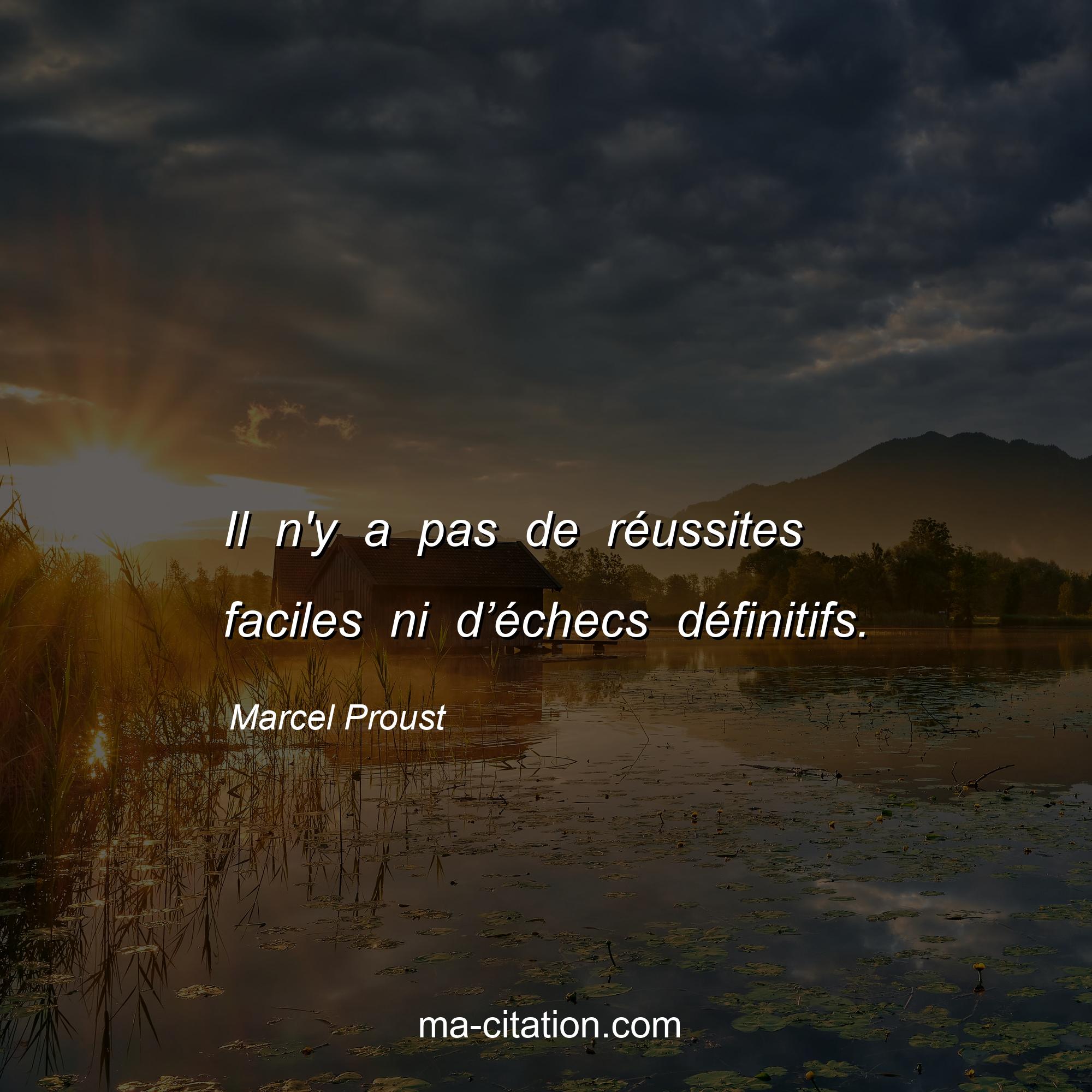 Citation sur la motivation de Marcel Proust :Il n'y a pas de réussites faciles ni d’échecs définitifs.