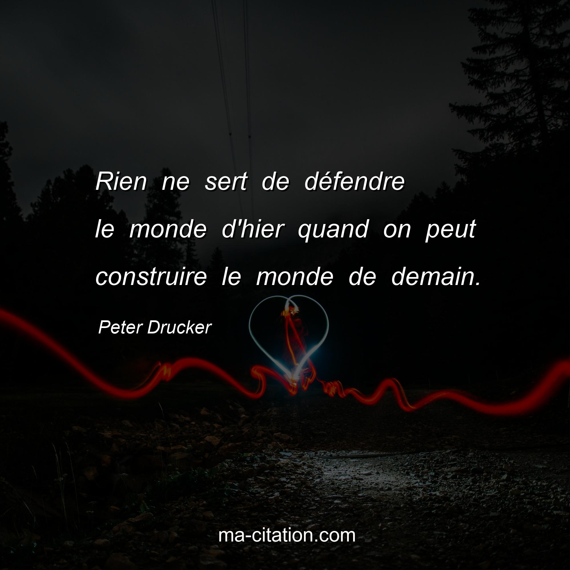 Citation sur la motivation de Peter Drucker :Rien ne sert de défendre le monde d'hier quand on peut construire le monde de demain.