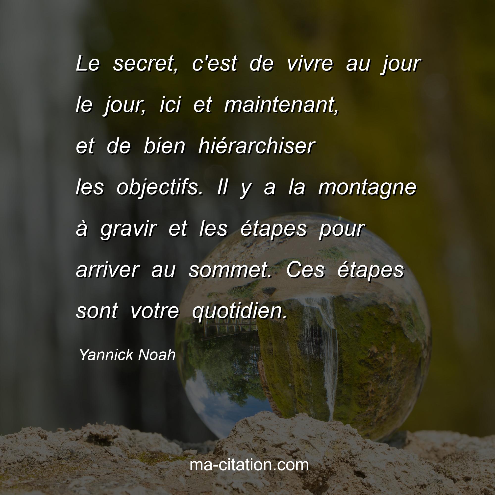 Yannick Noah est l'auteur de la citation sur la motivation "Le secret, c'est de vivre au jour le jour, ici et maintenant, et de bien hiérarchiser les objectifs. Il y a la montagne à gravir et les étapes pour arriver au sommet. Ces étapes sont votre quotidien.".