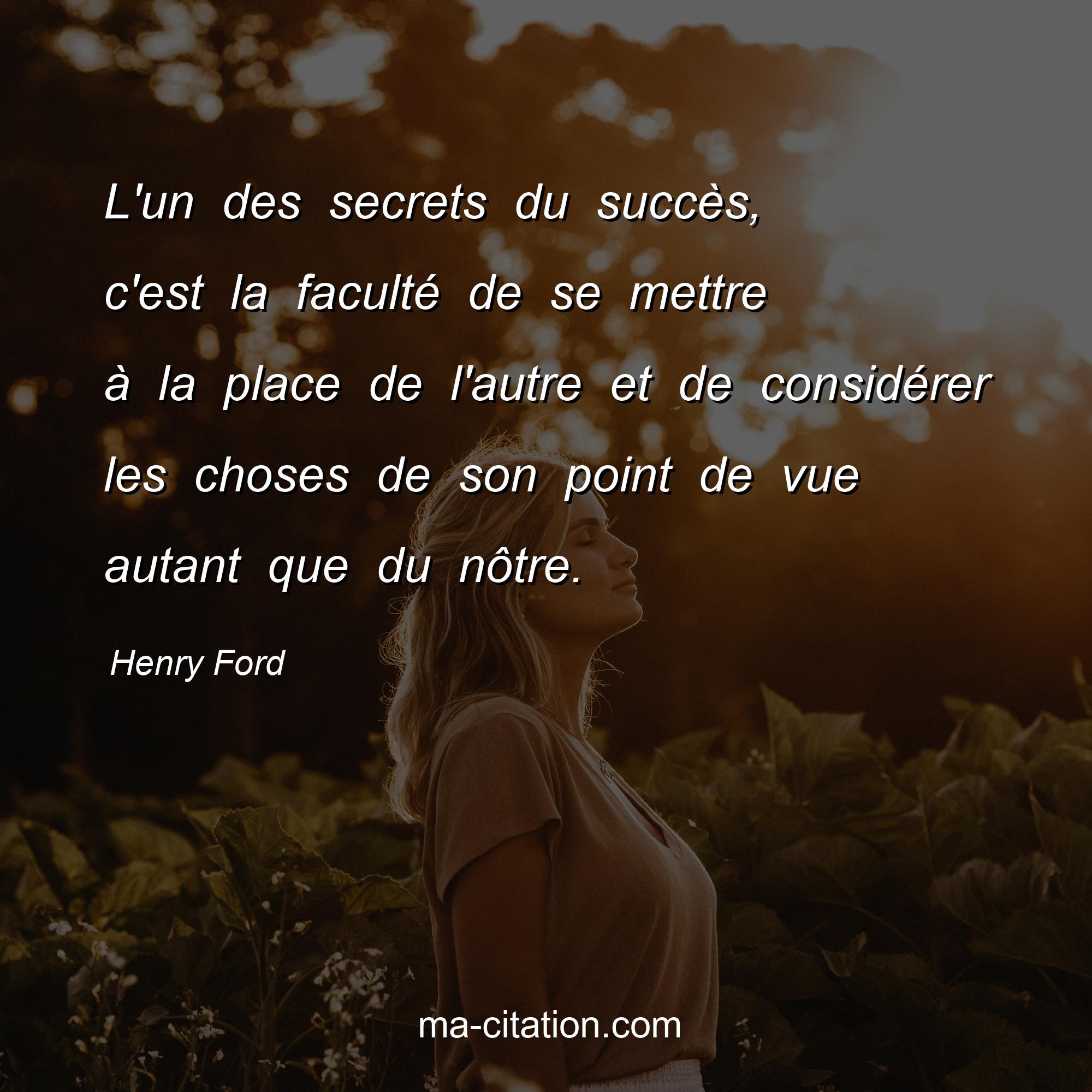 L'un des secrets du succès, c'est la faculté de se mettre à la place de l'autre et de considérer les choses de son point de vue autant que du nôtre.