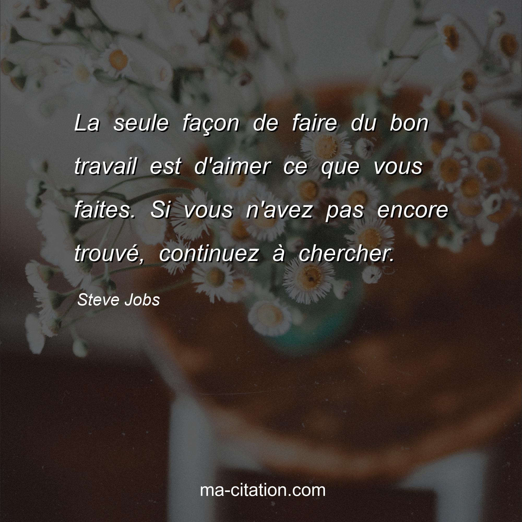 La seule façon de faire du bon travail est d'aimer ce que vous faites. Si vous n'avez pas encore trouvé, continuez à chercher.