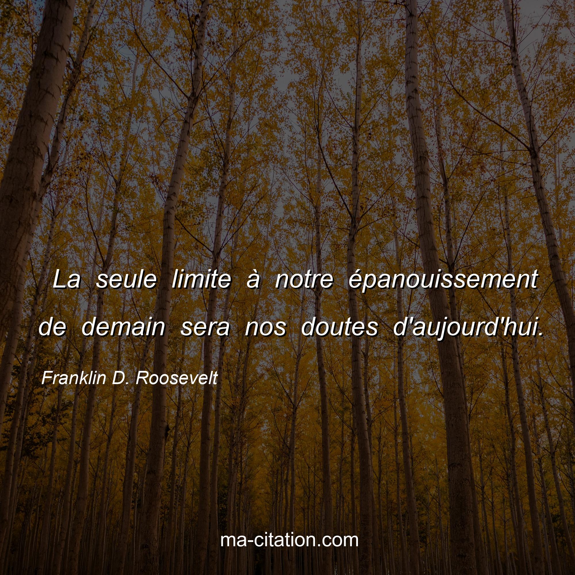 Citation sur la motivation de Franklin D. Roosevelt :La seule limite à notre épanouissement de demain sera nos doutes d'aujourd'hui.
