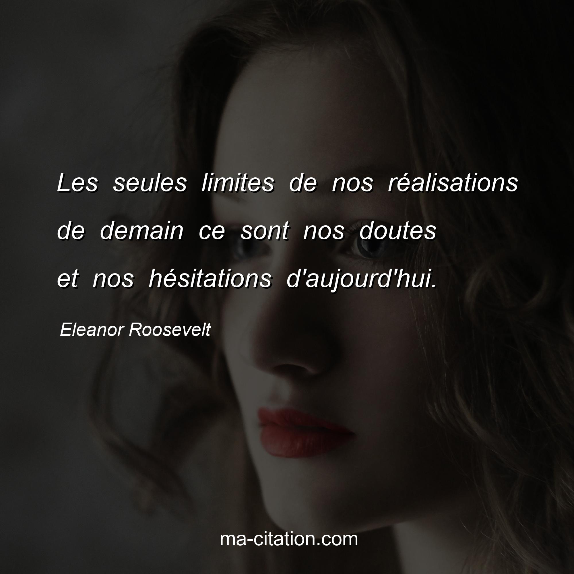 Citation sur la motivation d'Eleanor Roosevelt :Les seules limites de nos réalisations de demain ce sont nos doutes et nos hésitations d'aujourd'hui.