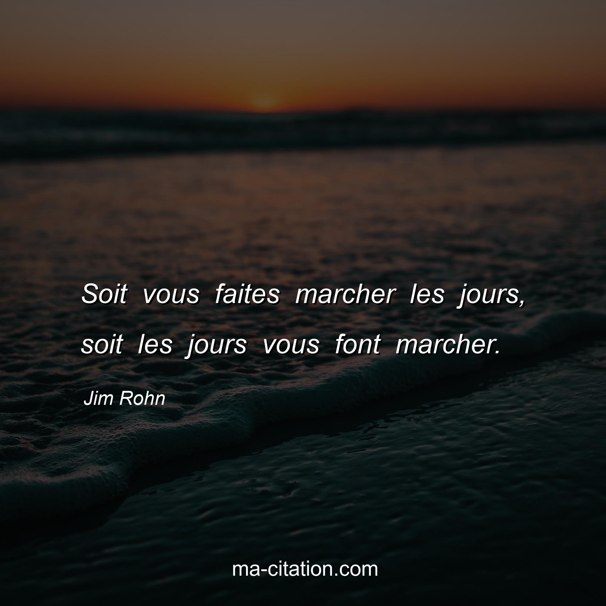 Citation sur la motivation de Jim Rohn :Soit vous faites marcher les jours, soit les jours vous font marcher.