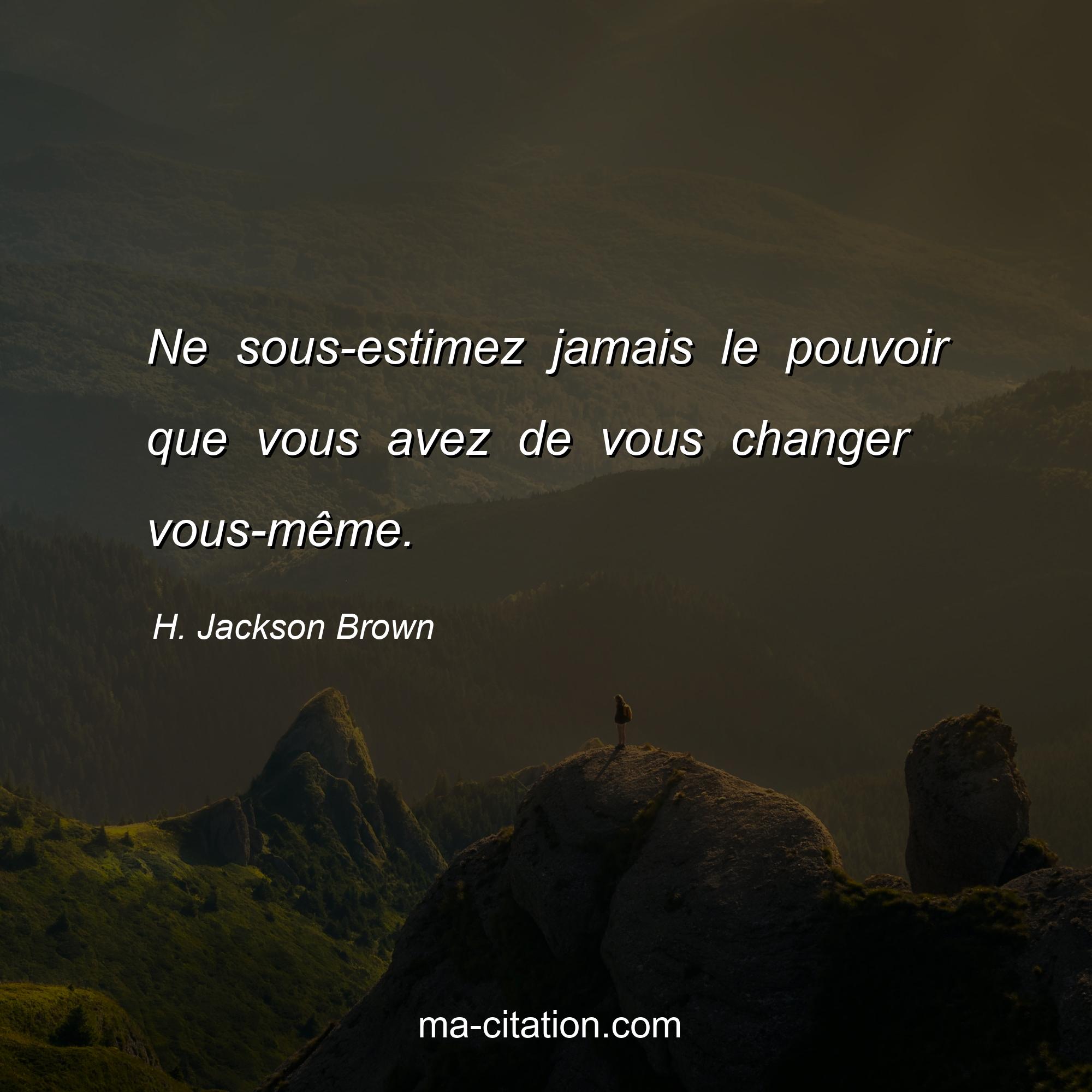 H. Jackson Brown est l'auteur de la citation sur la motivation "Ne sous-estimez jamais le pouvoir que vous avez de vous changer vous-même. ".