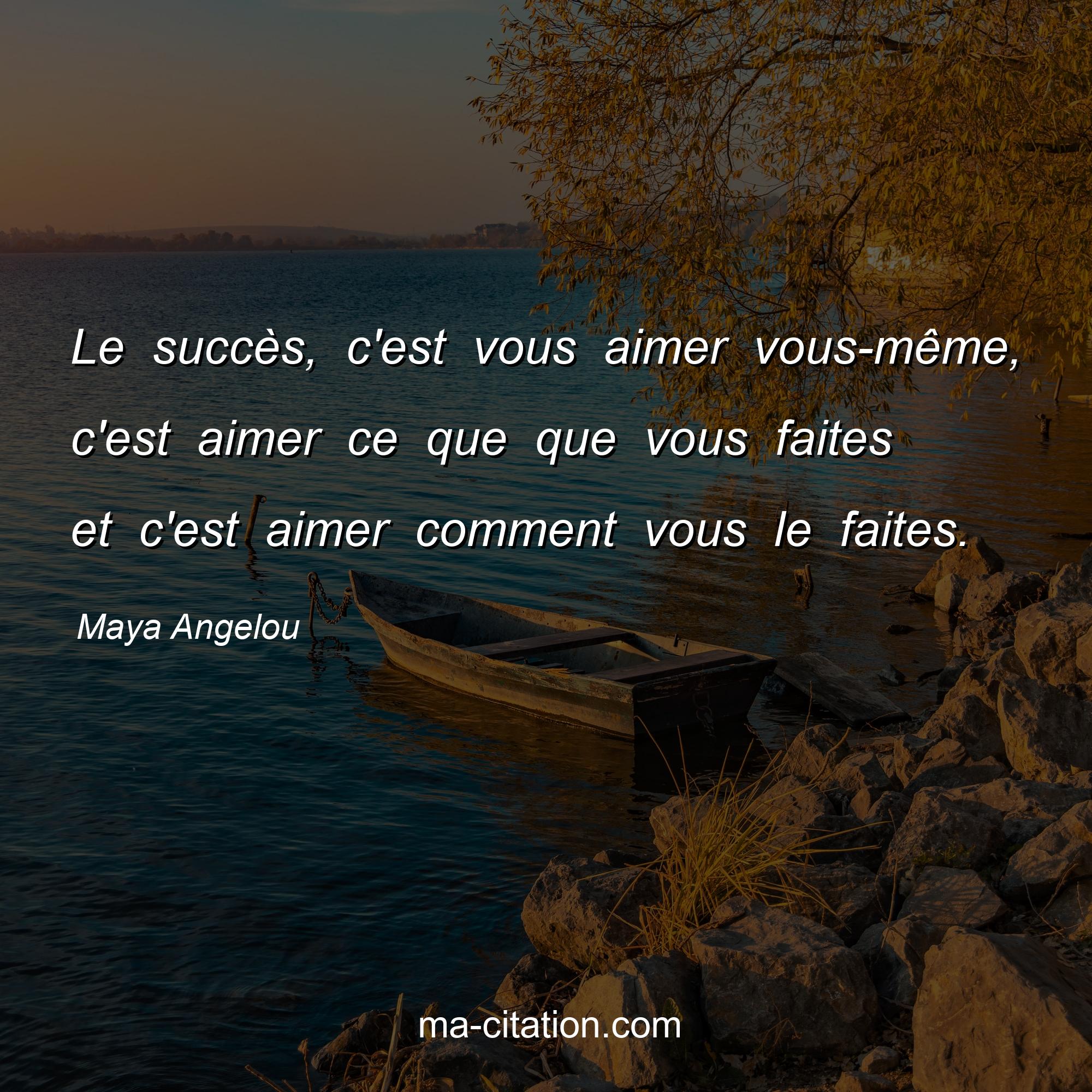 Citation sur la motivation de Maya Angelou :Le succès, c'est vous aimer vous-même, c'est aimer ce que que vous faites et c'est aimer comment vous le faites.
