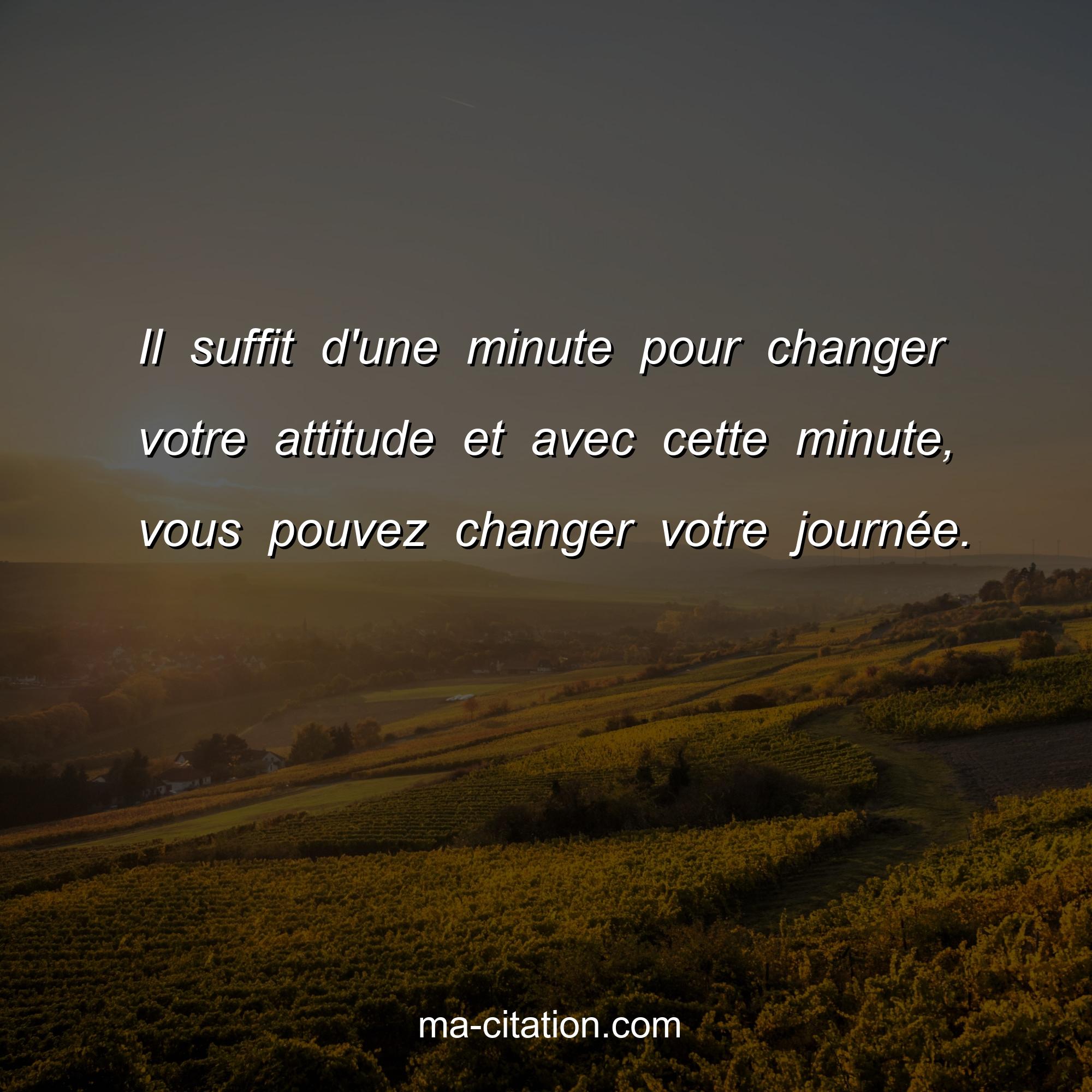 Il suffit d'une minute pour changer votre attitude et avec cette minute, vous pouvez changer votre journée.