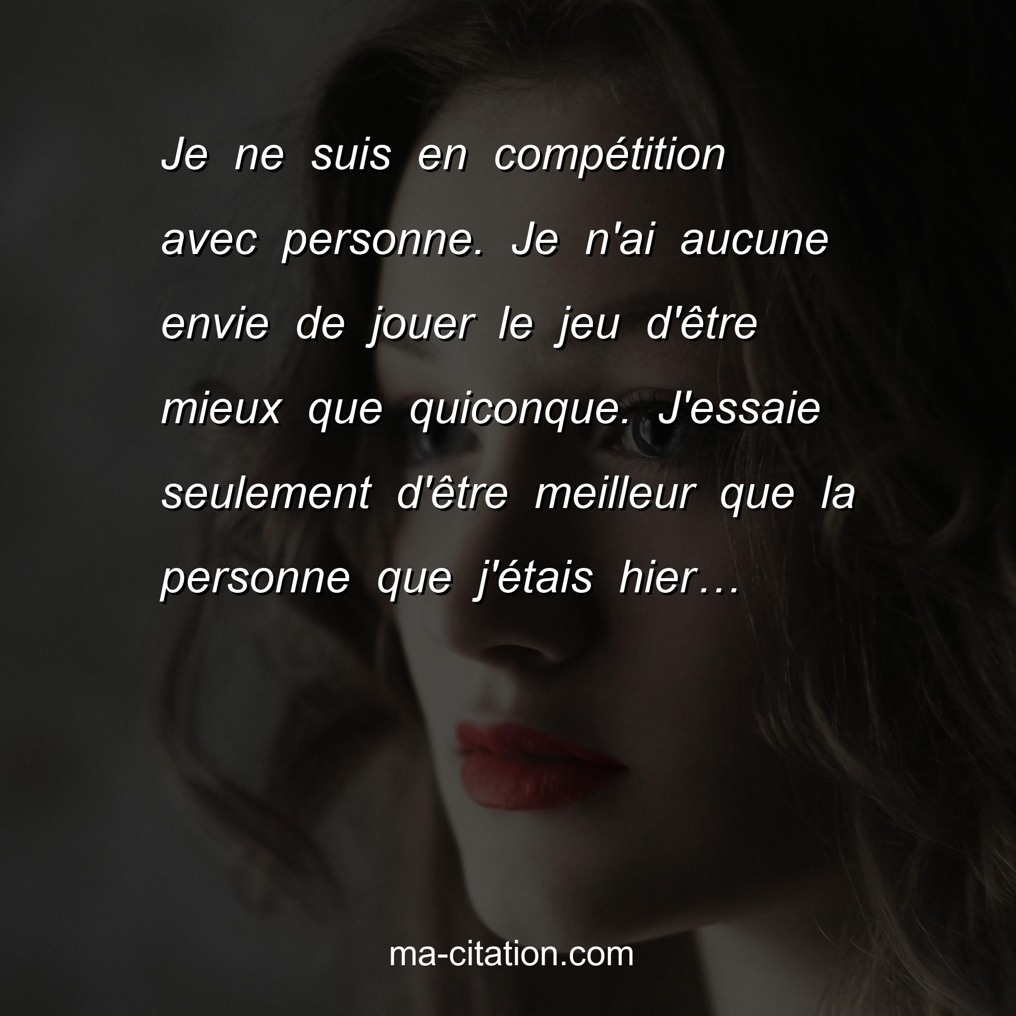 Citation sur la motivation :Je ne suis en compétition avec personne. Je n'ai aucune envie de jouer le jeu d'être mieux que quiconque. J'essaie seulement d'être meilleur que la personne que j'étais hier…