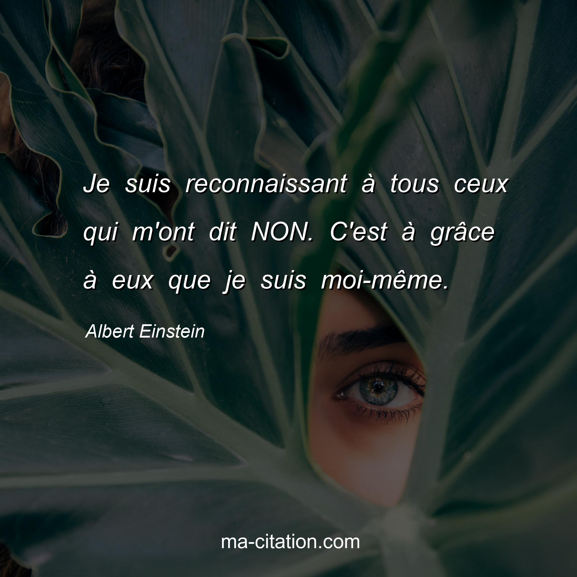 Citation sur la motivation d'Albert Einstein :Je suis reconnaissant à tous ceux qui m'ont dit NON. C'est à grâce à eux que je suis moi-même.