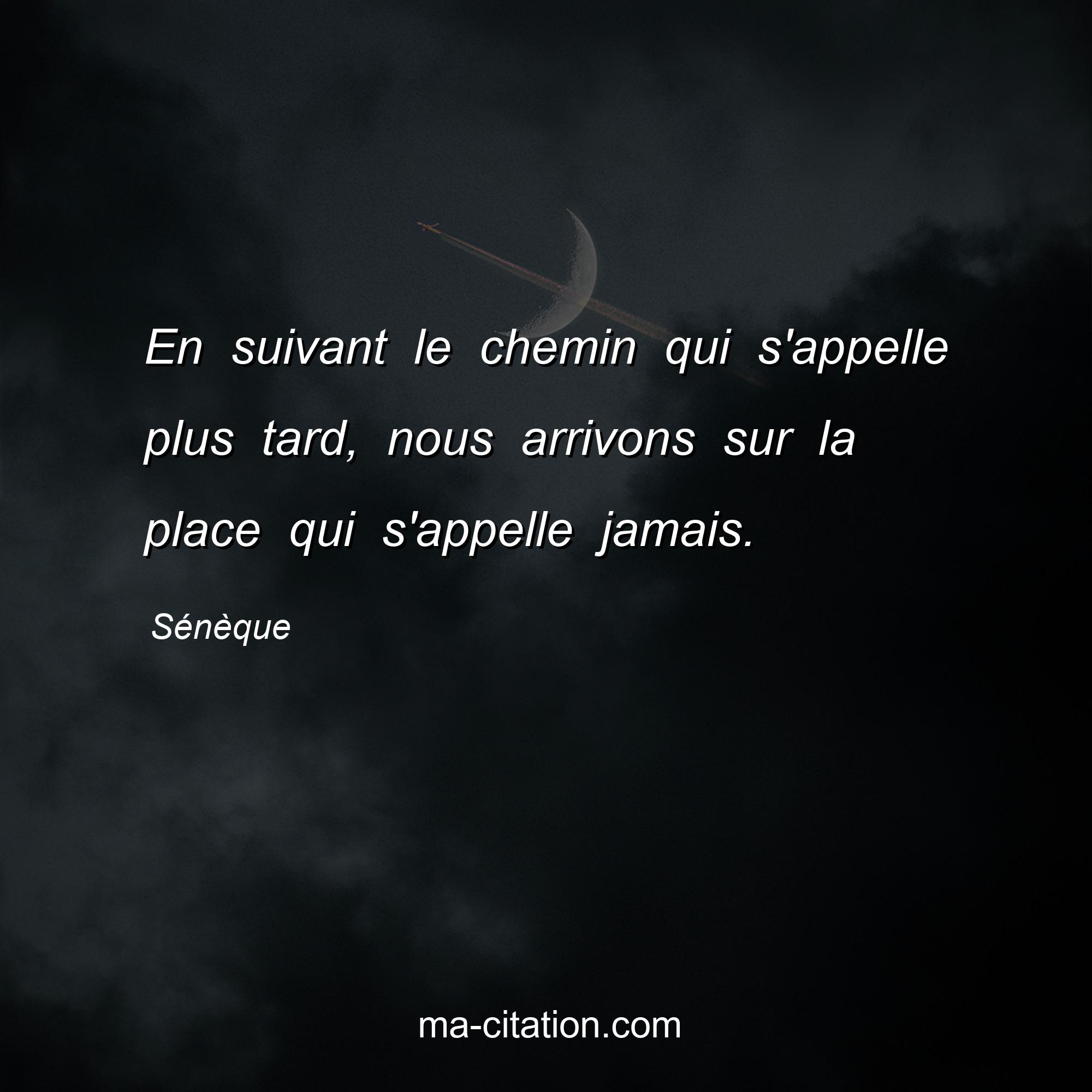 Citation sur la motivation de Sénèque :En suivant le chemin qui s'appelle plus tard, nous arrivons sur la place qui s'appelle jamais.