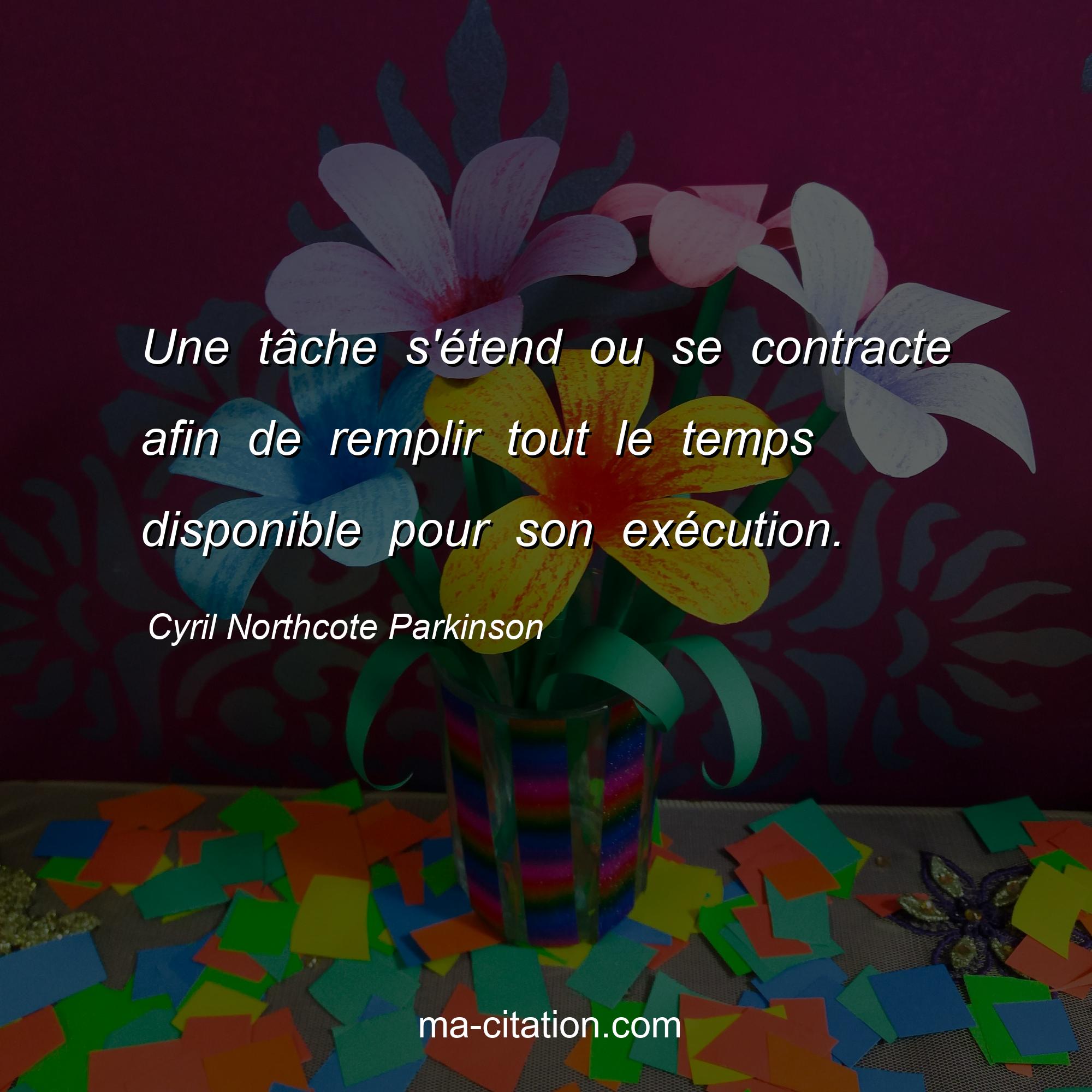 Cyril Northcote Parkinson est l'auteur de la citation sur la motivation "Une tâche s'étend ou se contracte afin de remplir tout le temps disponible pour son exécution.".