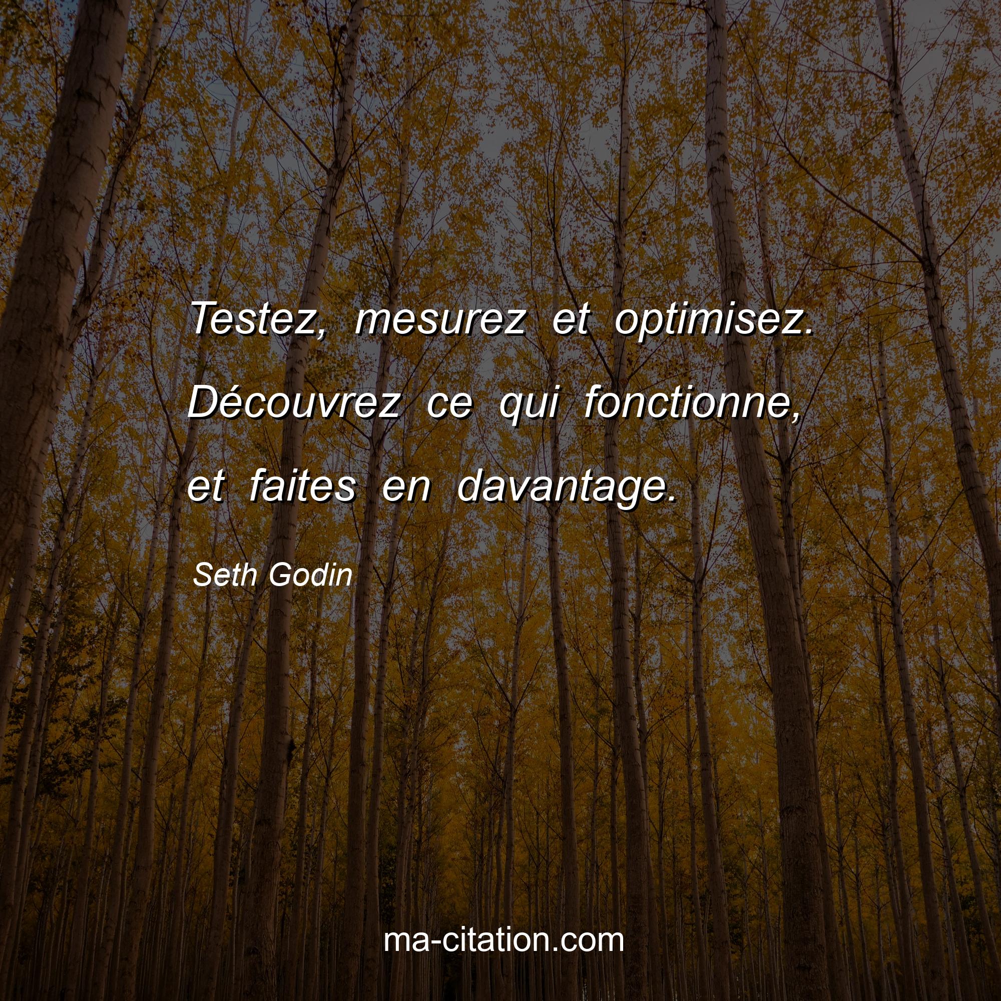 Citation sur la motivation de Seth Godin :Testez, mesurez et optimisez. Découvrez ce qui fonctionne, et faites en davantage.