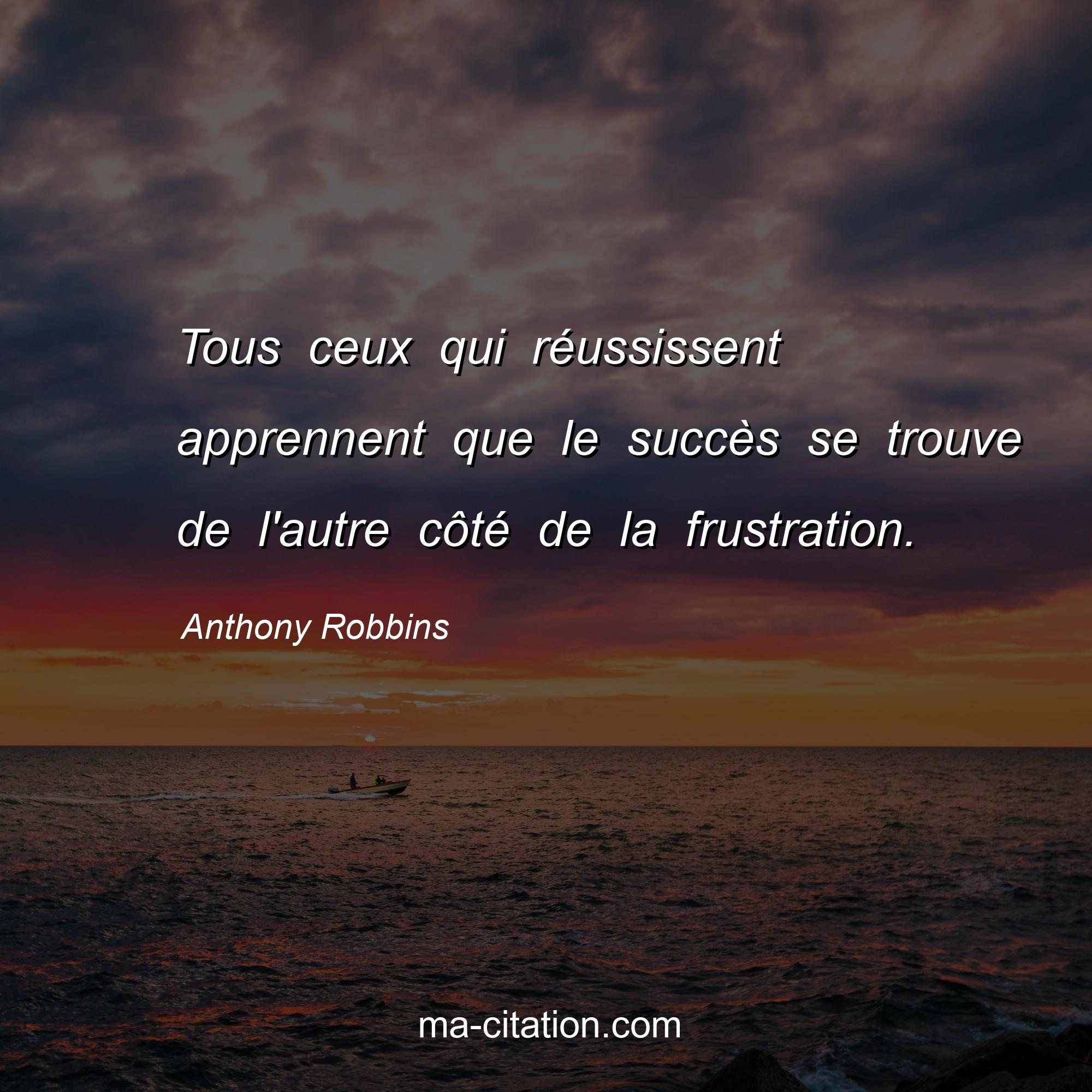 Citation sur la motivation d'Anthony Robbins :Tous ceux qui réussissent apprennent que le succès se trouve de l'autre côté de la frustration.