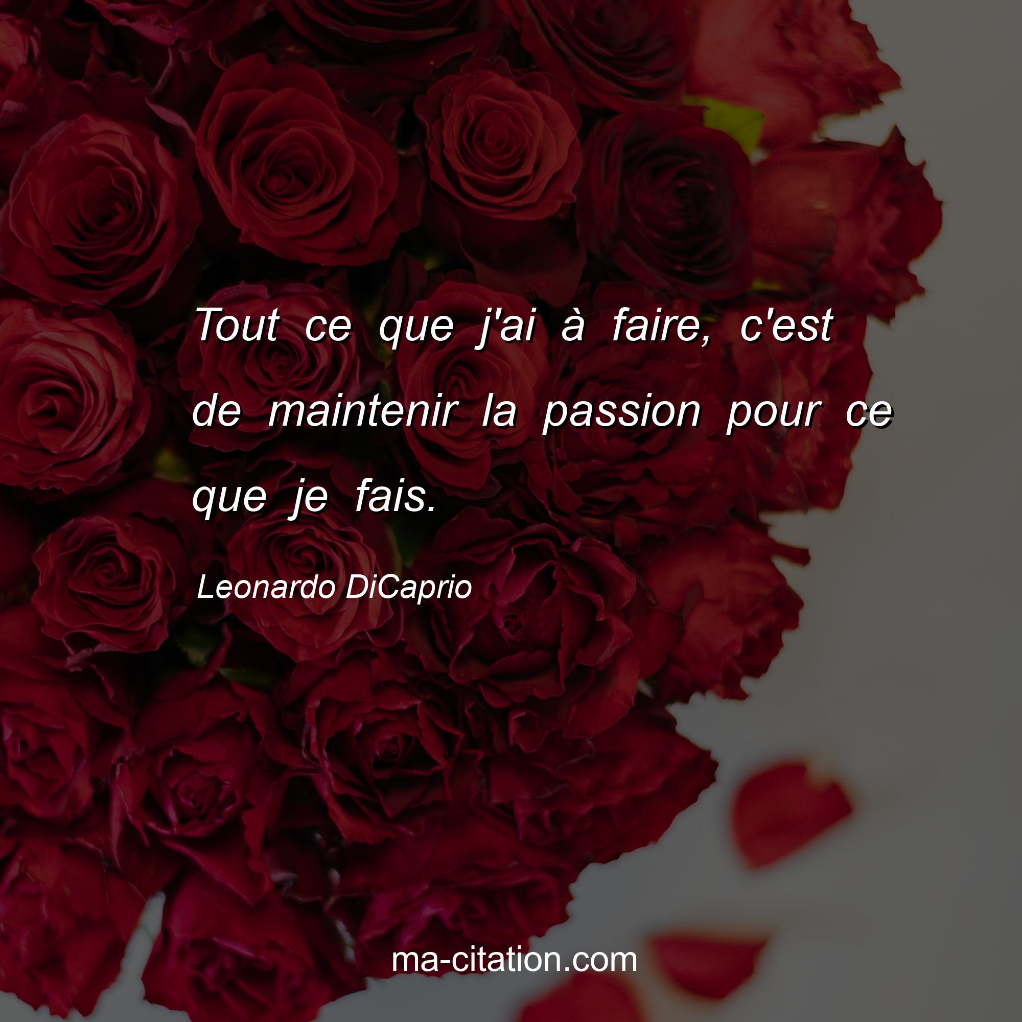 Citation sur la motivation de Leonardo DiCaprio :Tout ce que j'ai à faire, c'est de maintenir la passion pour ce que je fais.