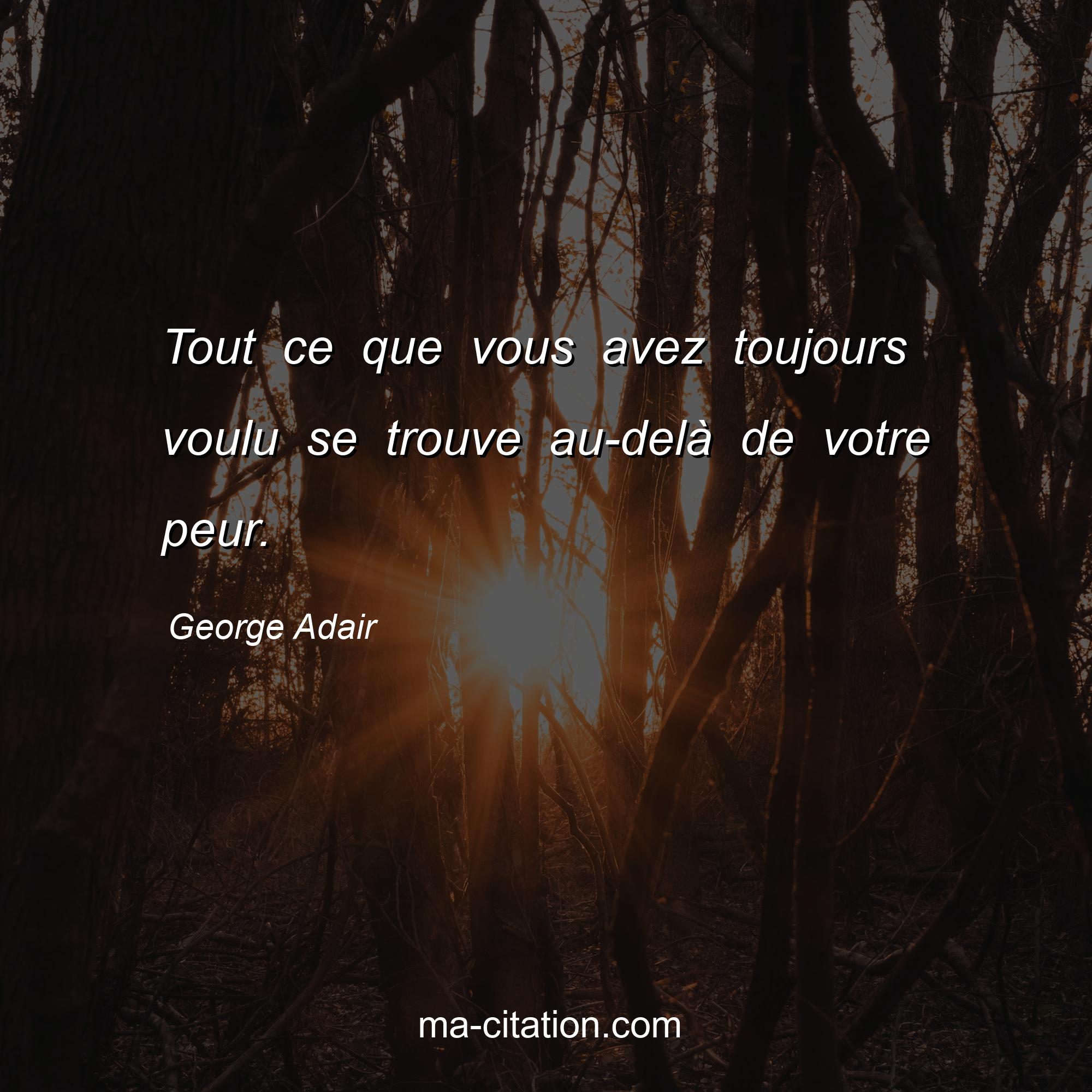 Citation sur la motivation de George Adair :Tout ce que vous avez toujours voulu se trouve au-delà de votre peur.