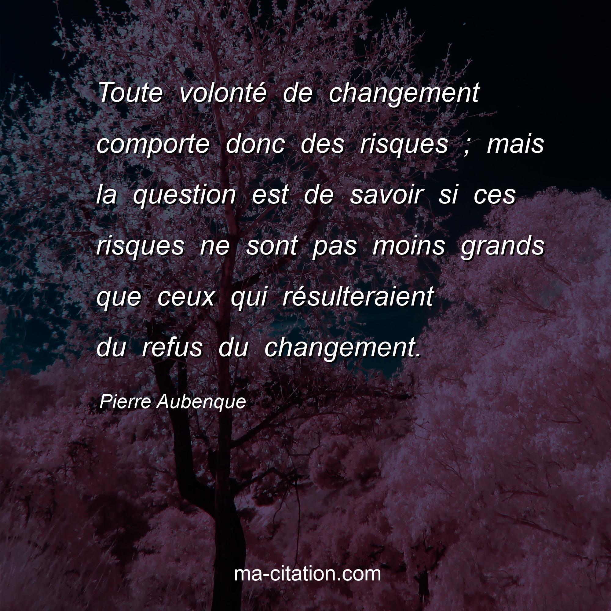 Citation sur la motivation de Pierre Aubenque :Toute volonté de changement comporte donc des risques ; mais la question est de savoir si ces risques ne sont pas moins grands que ceux qui résulteraient du refus du changement.