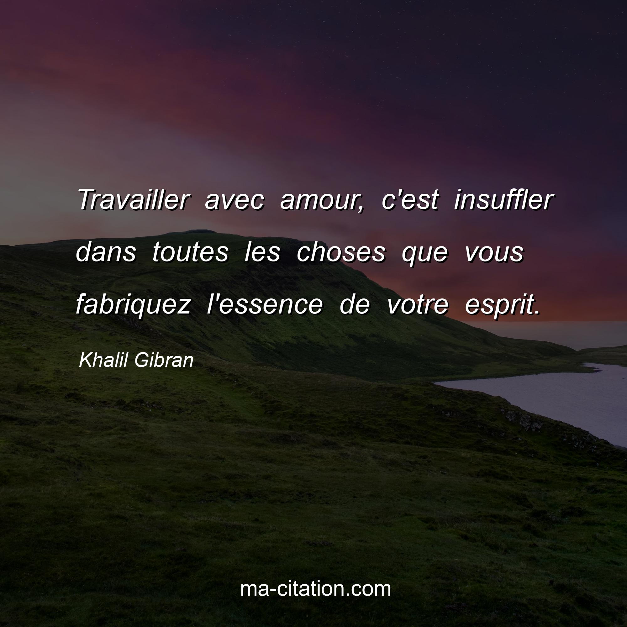 Citation sur la motivation de Khalil Gibran :Travailler avec amour, c'est insuffler dans toutes les choses que vous fabriquez l'essence de votre esprit.