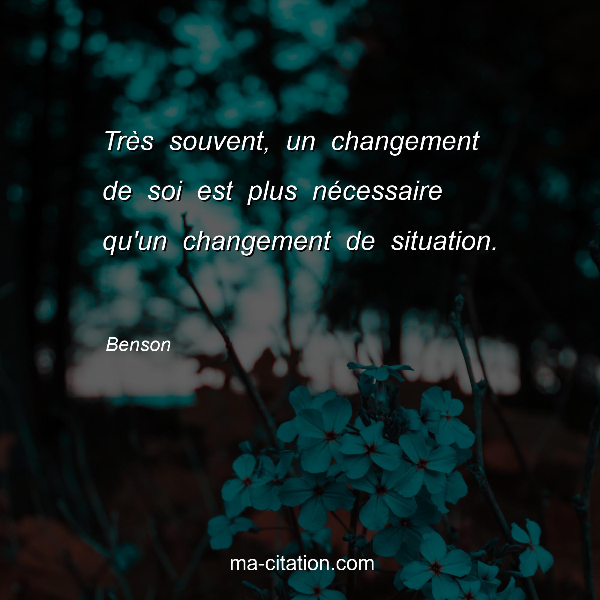 Citation sur la motivation de Benson :Très souvent, un changement de soi est plus nécessaire qu'un changement de situation.