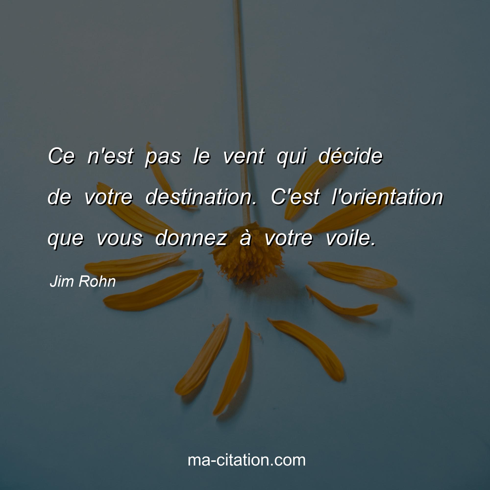 Citation sur la motivation de Jim Rohn :Ce n'est pas le vent qui décide de votre destination. C'est l'orientation que vous donnez à votre voile.