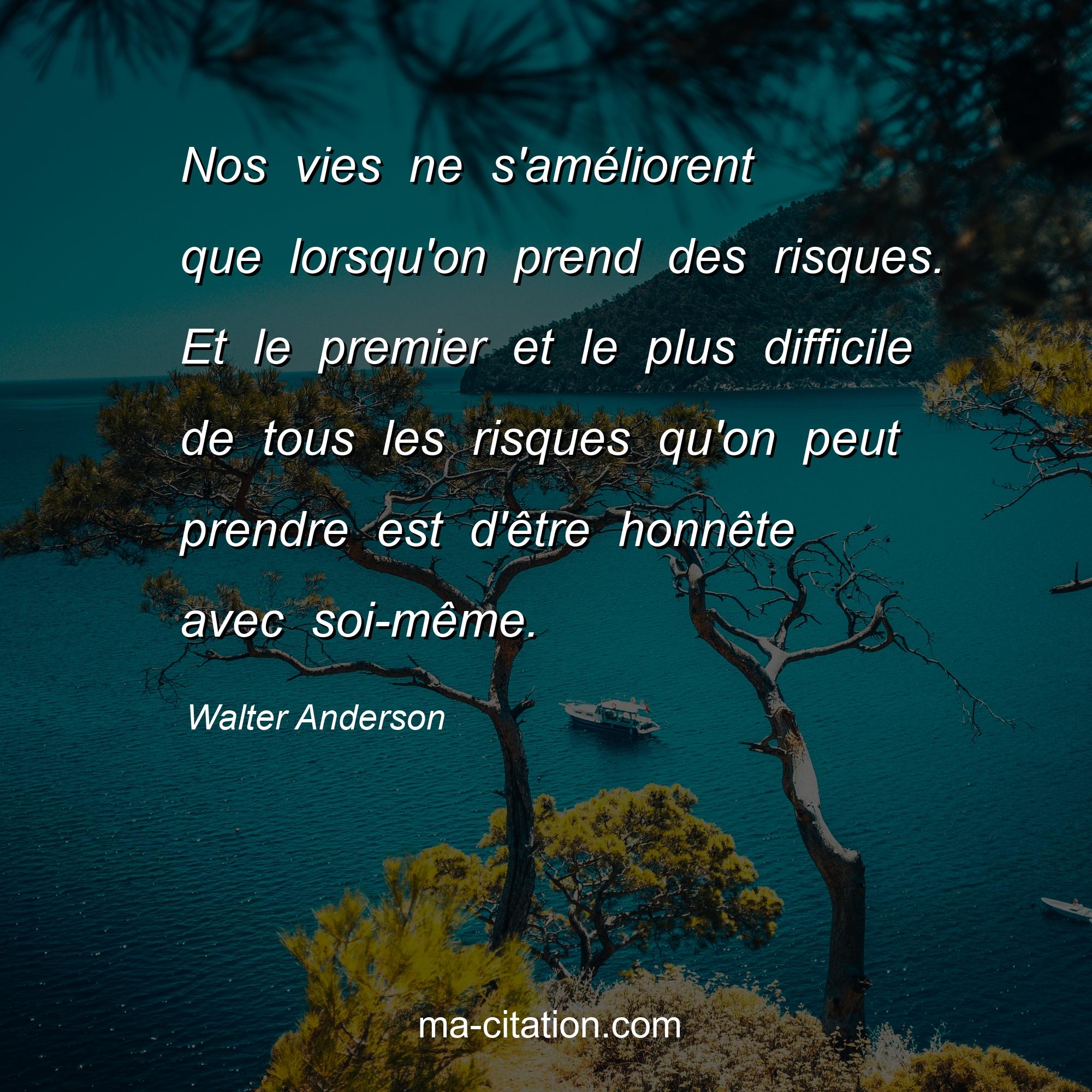 Walter Anderson est l'auteur de la citation sur la motivation "Nos vies ne s'améliorent que lorsqu'on prend des risques. Et le premier et le plus difficile de tous les risques qu'on peut prendre est d'être honnête avec soi-même.".