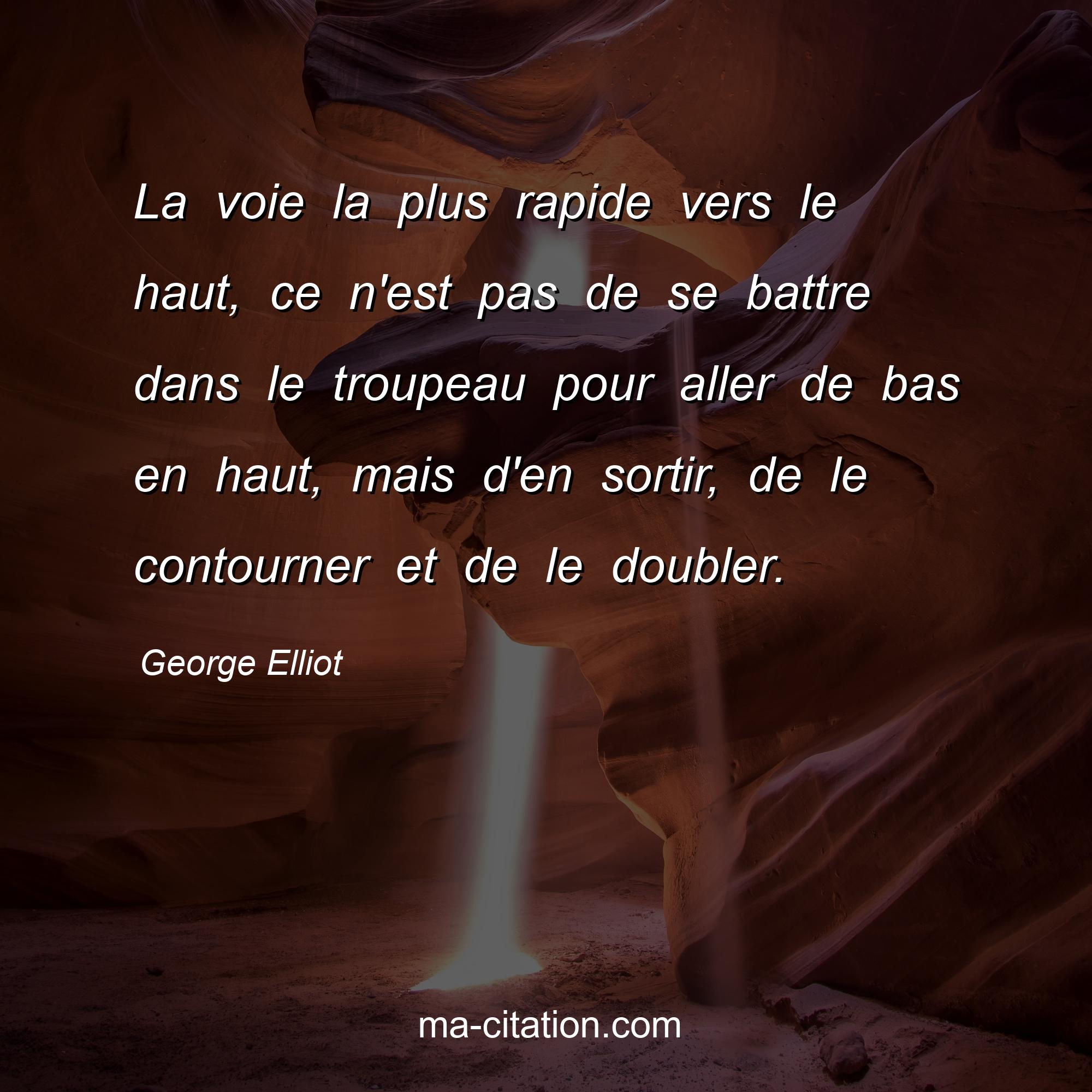 Citation sur la motivation de George Elliot :La voie la plus rapide vers le haut, ce n'est pas de se battre dans le troupeau pour aller de bas en haut, mais d'en sortir, de le contourner et de le doubler.