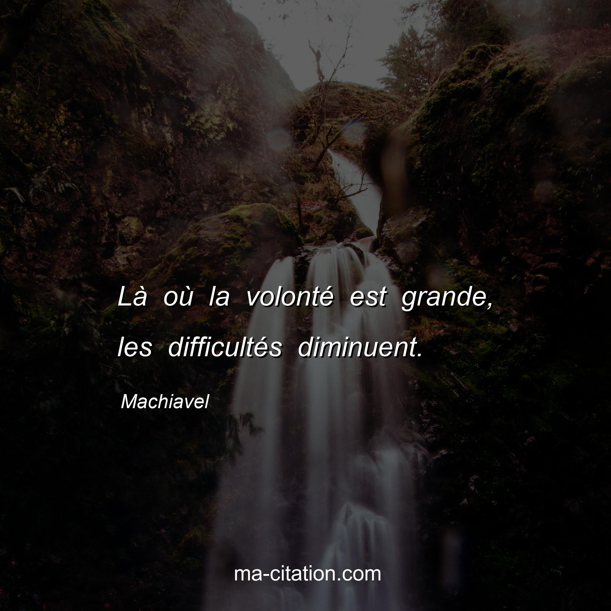 Citation sur la motivation de Machiavel :Là où la volonté est grande, les difficultés diminuent.