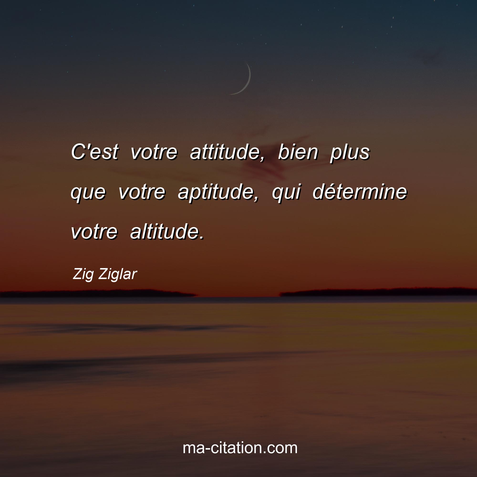 Citation sur la motivation de Zig Ziglar :C'est votre attitude, bien plus que votre aptitude, qui détermine votre altitude.