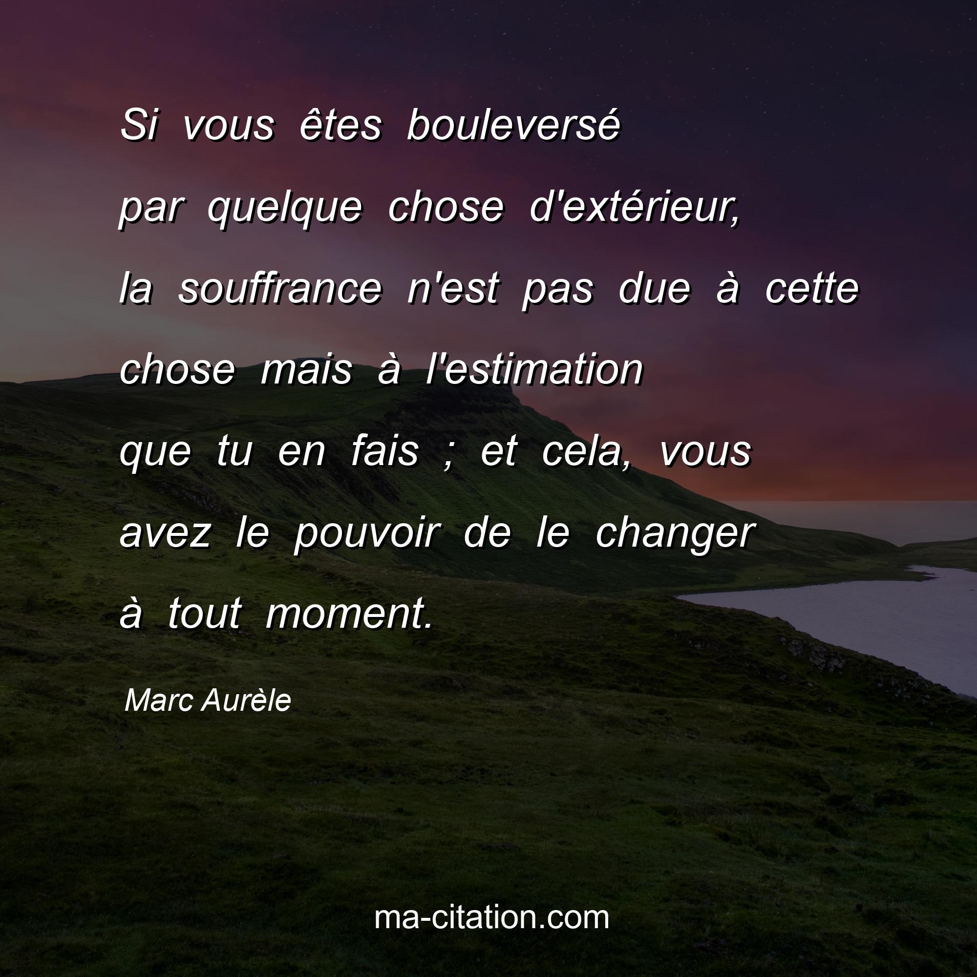 Citation sur la motivation de Marc Aurèle :Si vous êtes bouleversé par quelque chose d'extérieur, la souffrance n'est pas due à cette chose mais à l'estimation que tu en fais ; et cela, vous avez le pouvoir de le changer à tout moment.