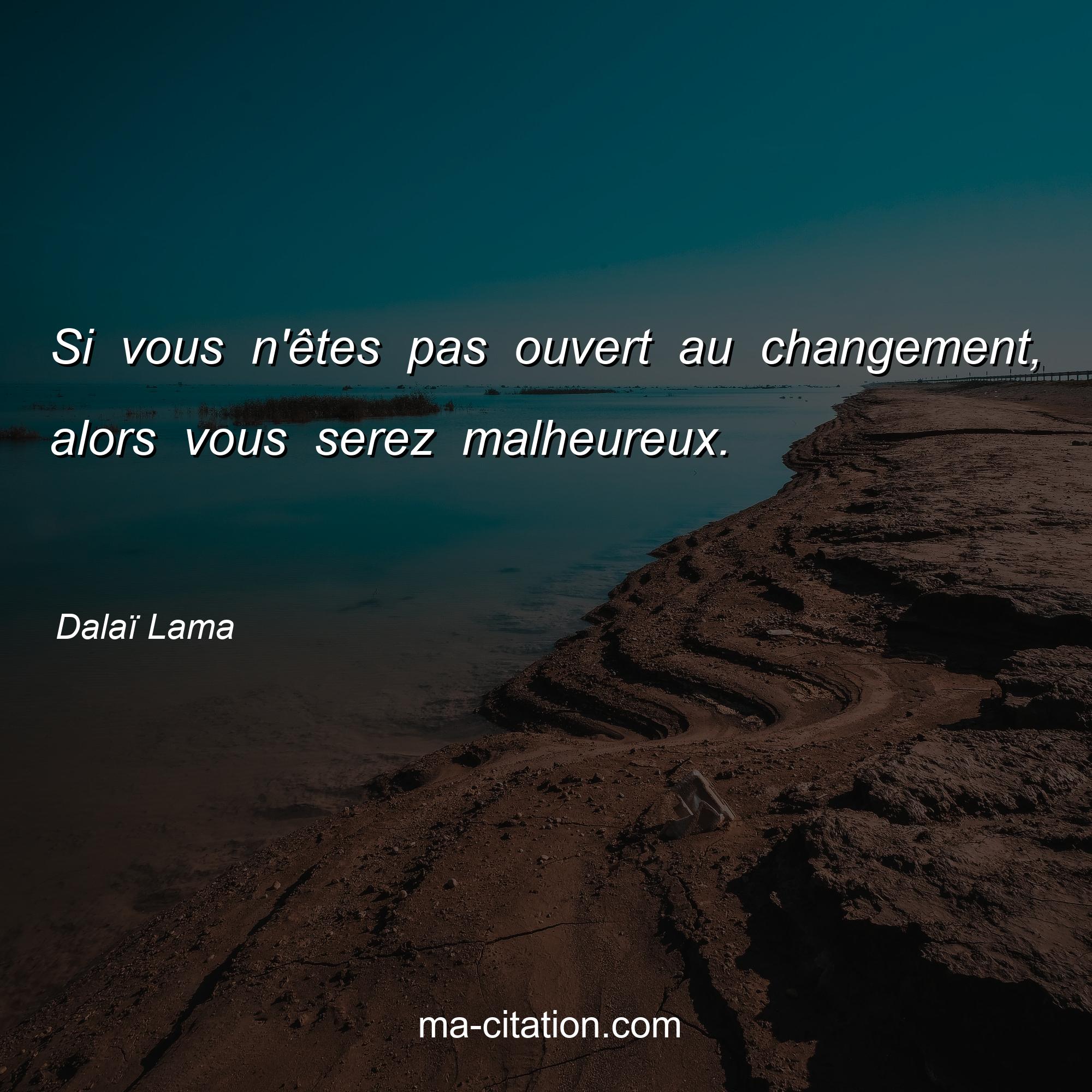 Citation sur la motivation de Dalaï Lama :Si vous n'êtes pas ouvert au changement, alors vous serez malheureux.