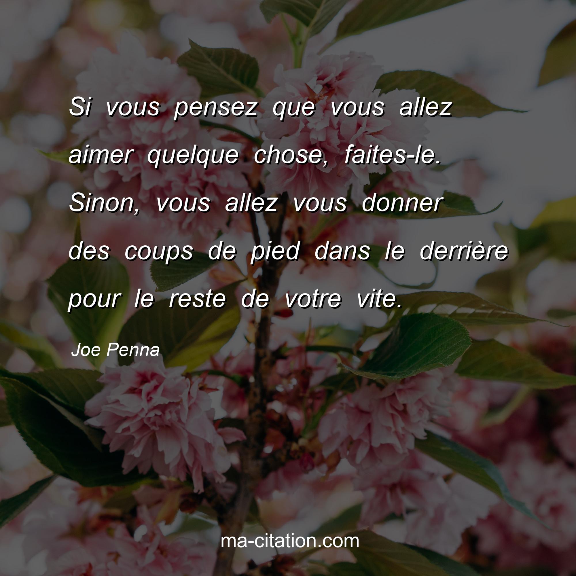 Joe Penna est l'auteur de la citation sur la motivation "Si vous pensez que vous allez aimer quelque chose, faites-le. Sinon, vous allez vous donner des coups de pied dans le derrière pour le reste de votre vite.".
