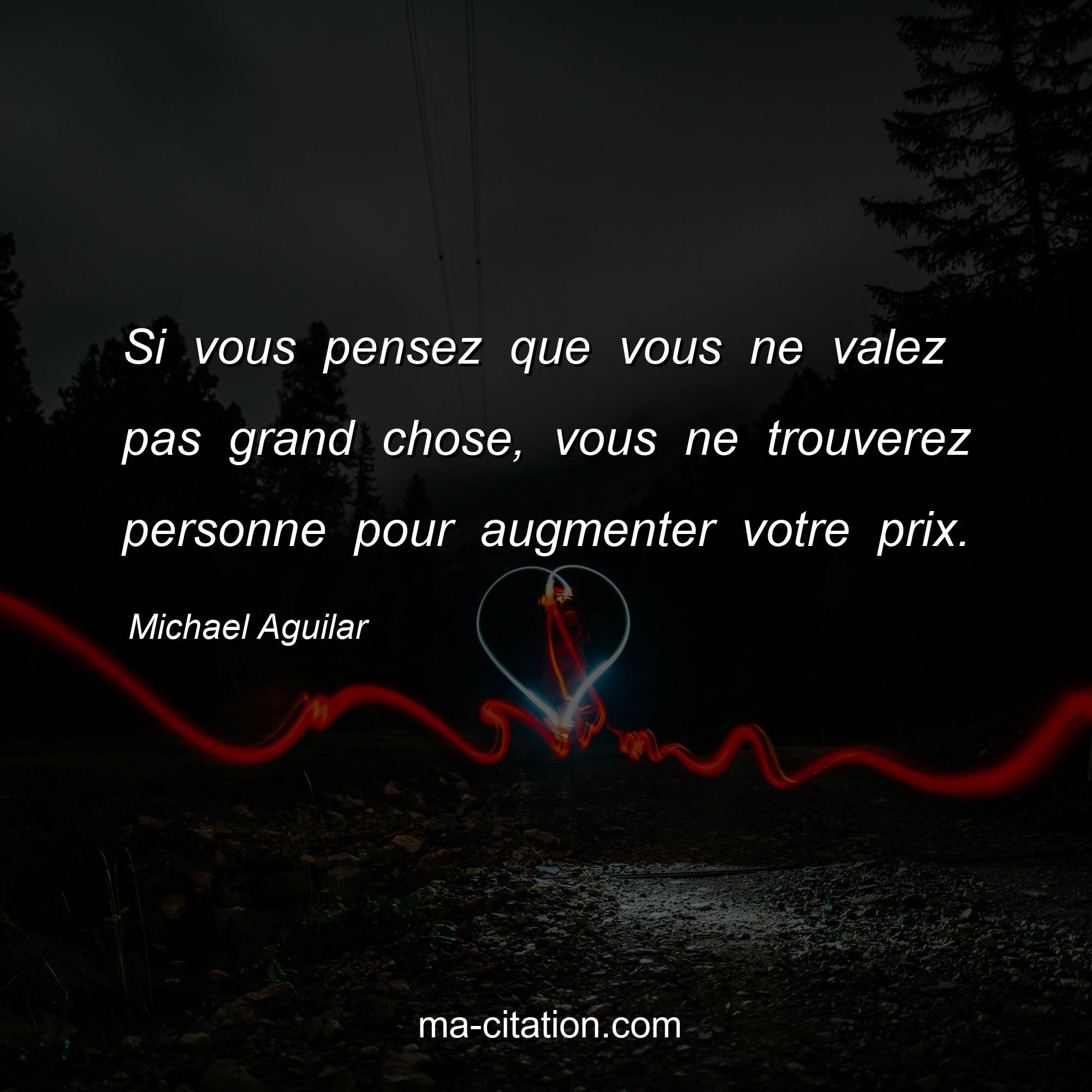 Citation sur la motivation de Michael Aguilar :Si vous pensez que vous ne valez pas grand chose, vous ne trouverez personne pour augmenter votre prix.