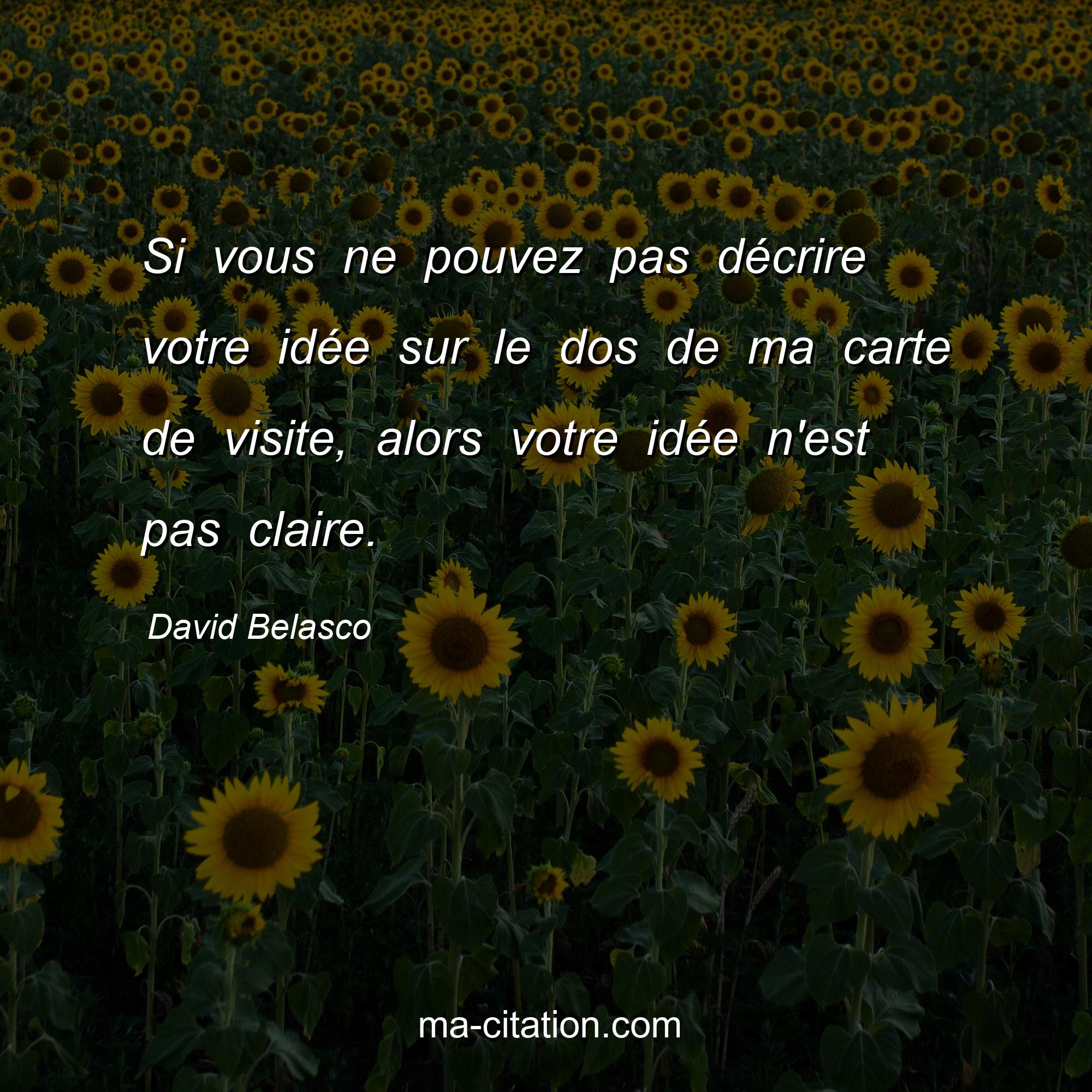 David Belasco est l'auteur de la citation sur la motivation "Si vous ne pouvez pas décrire votre idée sur le dos de ma carte de visite, alors votre idée n'est pas claire.".