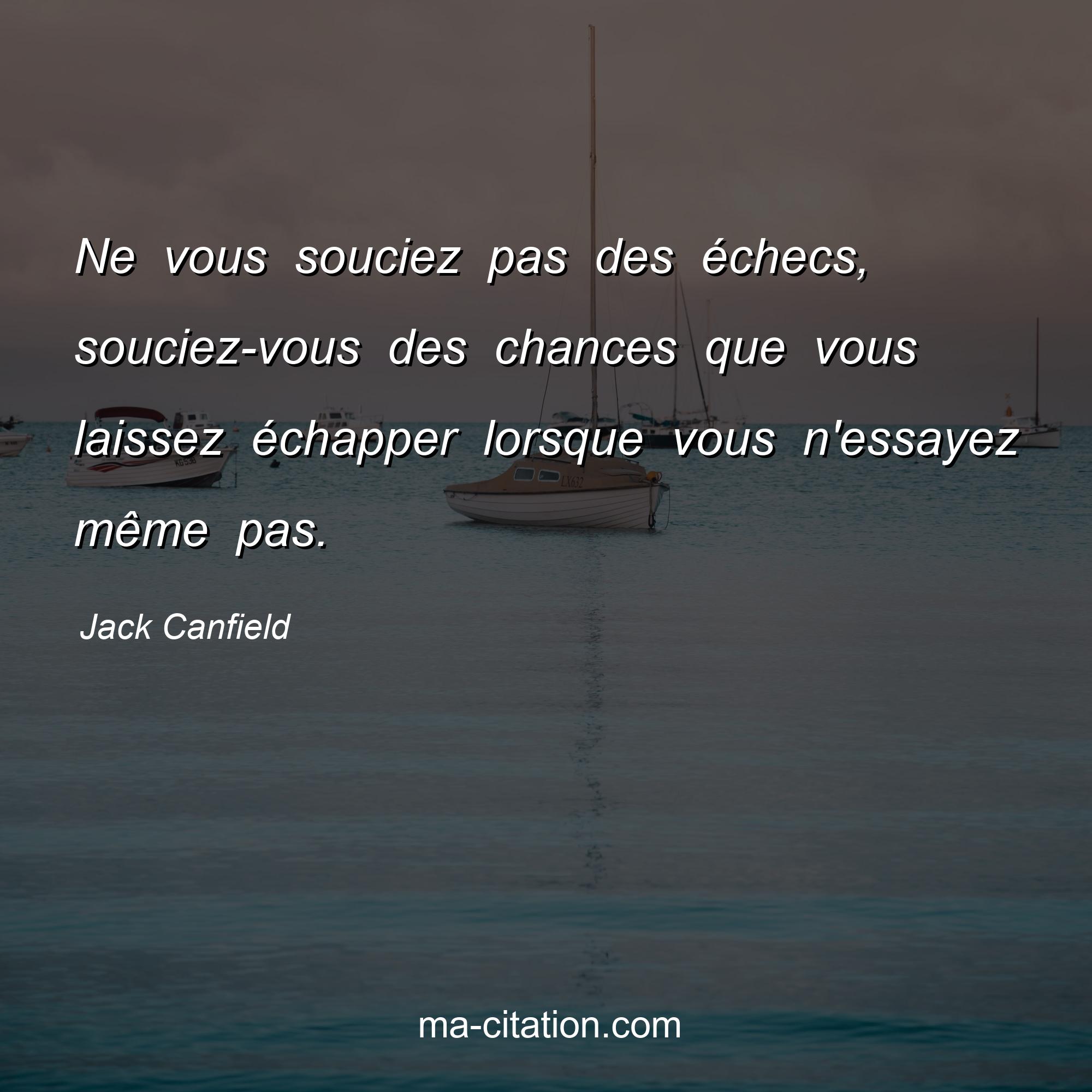 Citation sur la motivation de Jack Canfield :Ne vous souciez pas des échecs, souciez-vous des chances que vous laissez échapper lorsque vous n'essayez même pas.