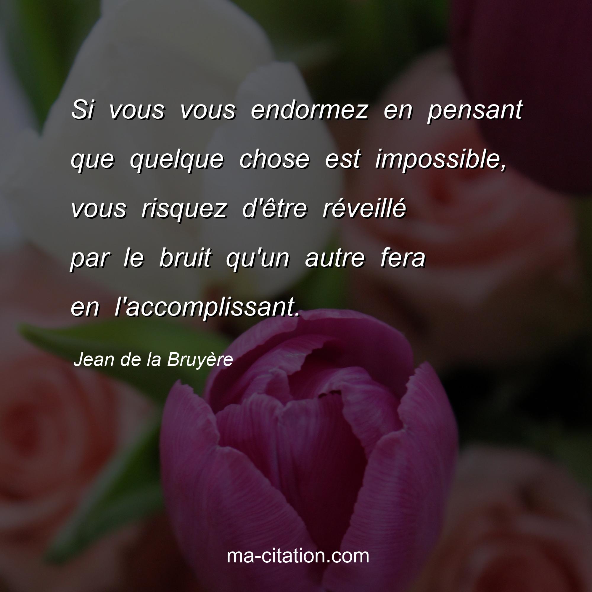 Citation sur la motivation de Jean de la Bruyère :Si vous vous endormez en pensant que quelque chose est impossible, vous risquez d'être réveillé par le bruit qu'un autre fera en l'accomplissant.