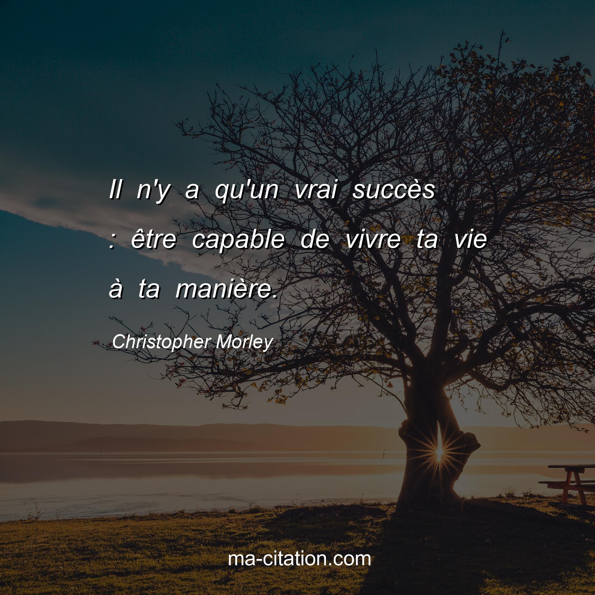 Christopher Morley est l'auteur de la citation sur la motivation "Il n'y a qu'un vrai succès : être capable de vivre ta vie à ta manière.".