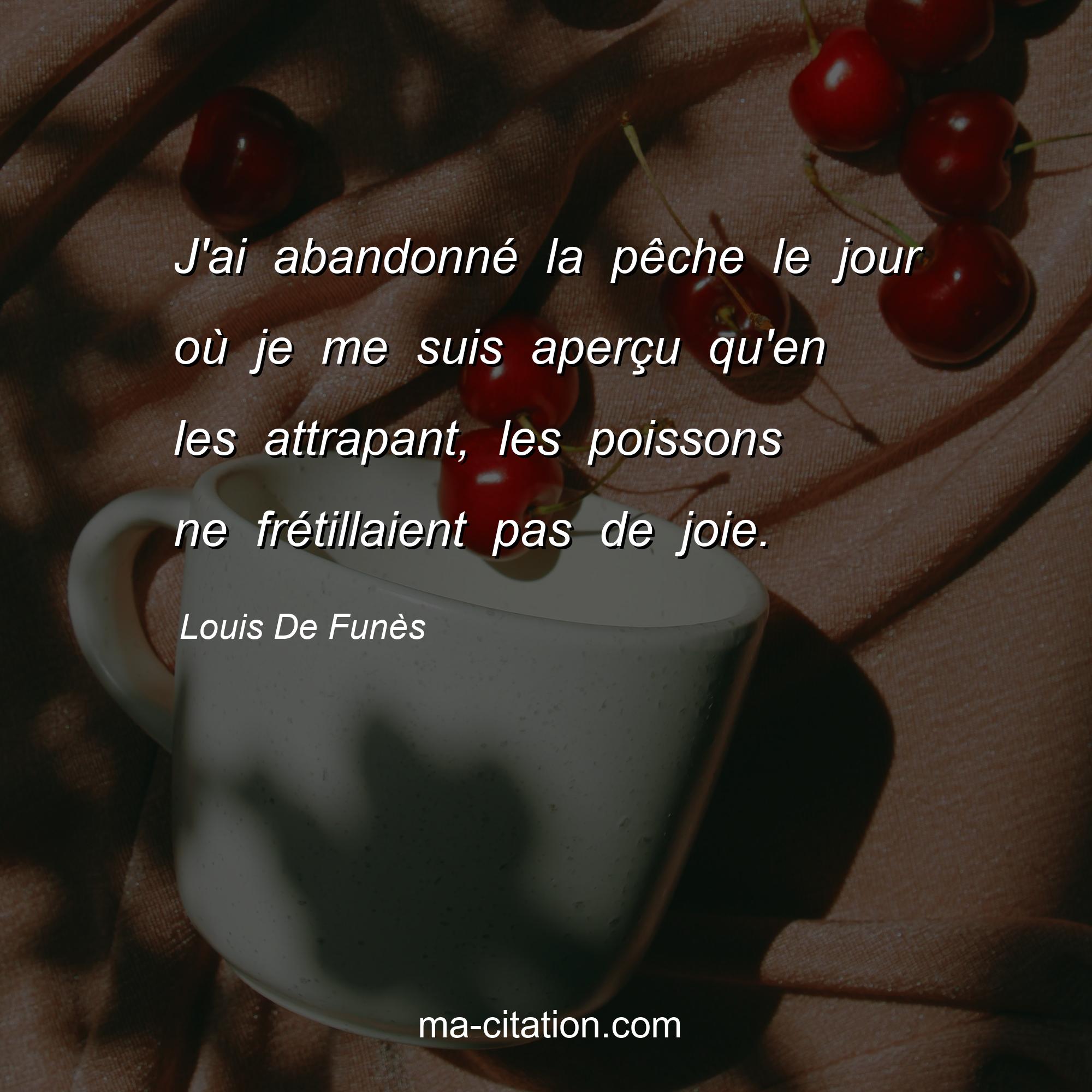 Citation sur la vie de Louis De Funès :J'ai abandonné la pêche le jour où je me suis aperçu qu'en les attrapant, les poissons ne frétillaient pas de joie.