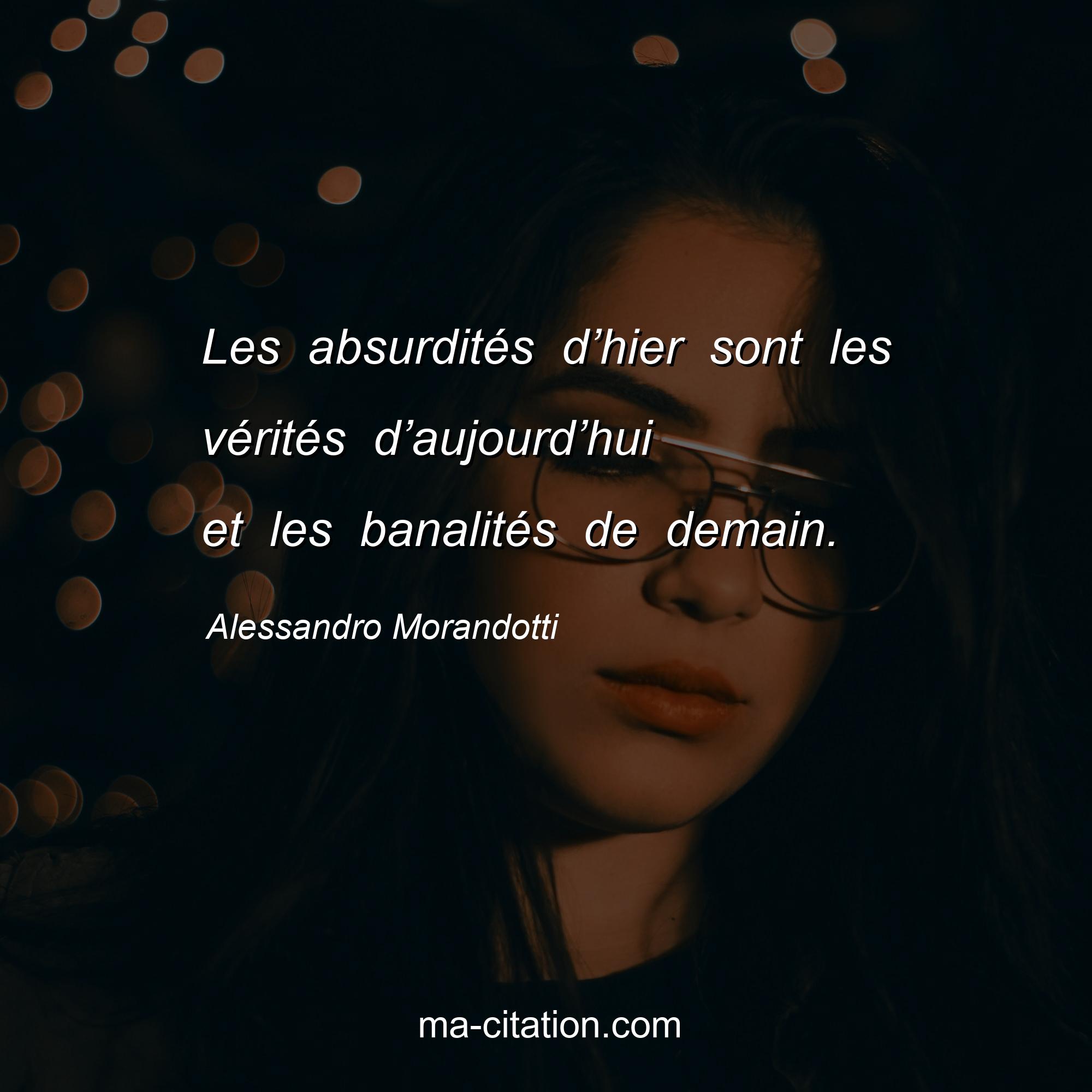 Alessandro Morandotti est l'auteur de la citation sur la vie "Les absurdités d’hier sont les vérités d’aujourd’hui et les banalités de demain.".