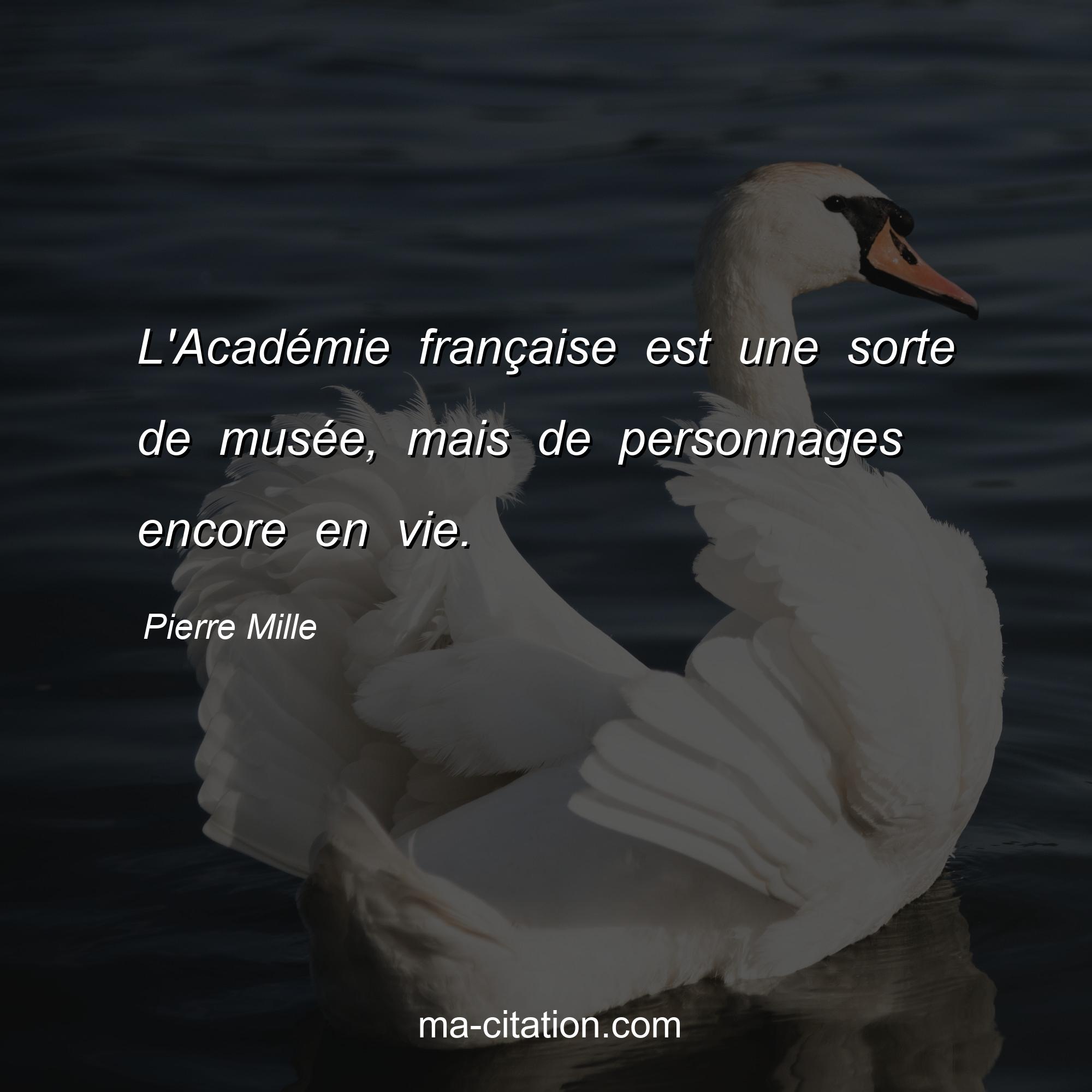 Citation sur la vie de Pierre Mille :L'Académie française est une sorte de musée, mais de personnages encore en vie.